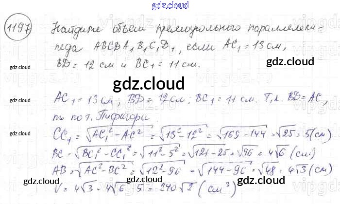 Ответ на задание 1197 Учебник Геометрия за 7, 8, 9 (седьмой, восьмой, девятый) класс Атанасян, Бутузов, Кадомцев 2010