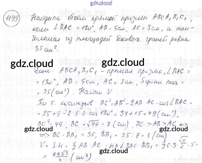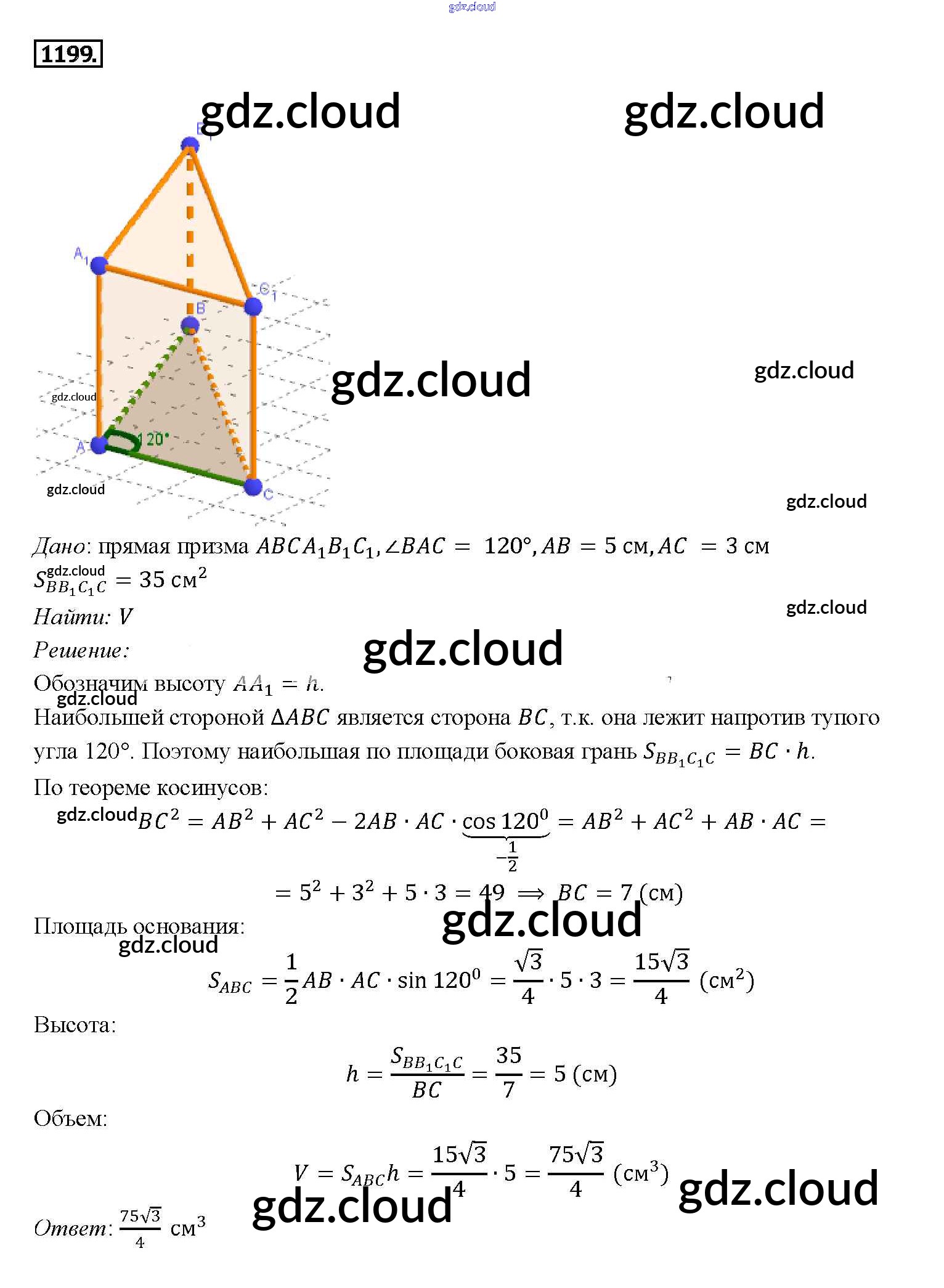 Ответ на задание 1199 Учебник Геометрия за 7, 8, 9 (седьмой, восьмой, девятый) класс Атанасян, Бутузов, Кадомцев 2010