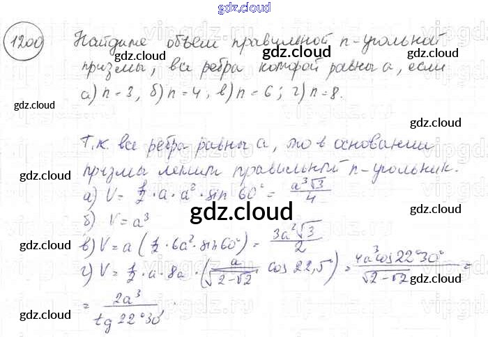 Ответ на задание 1200 Учебник Геометрия за 7, 8, 9 (седьмой, восьмой, девятый) класс Атанасян, Бутузов, Кадомцев 2010