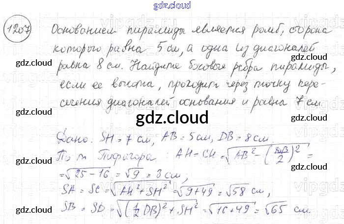 Ответ на задание 1207 Учебник Геометрия за 7, 8, 9 (седьмой, восьмой, девятый) класс Атанасян, Бутузов, Кадомцев 2010