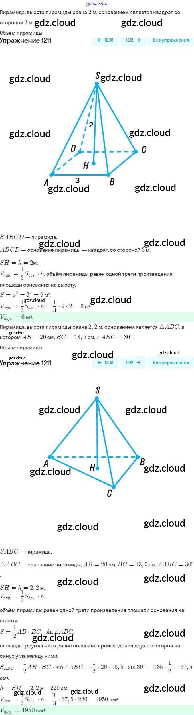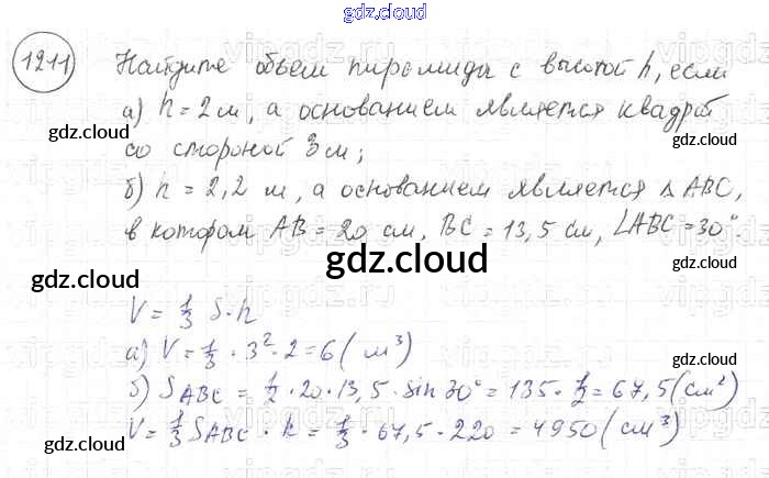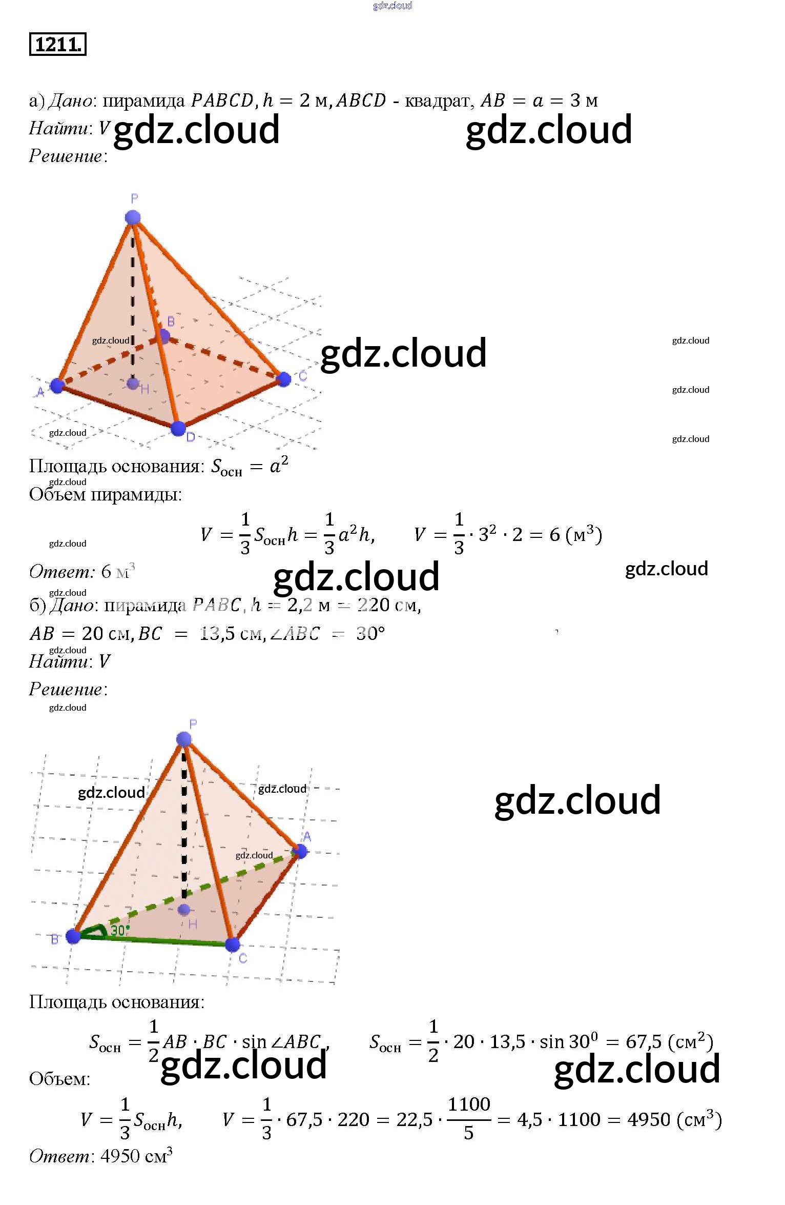 Ответ на задание 1211 Учебник Геометрия за 7, 8, 9 (седьмой, восьмой, девятый) класс Атанасян, Бутузов, Кадомцев 2010