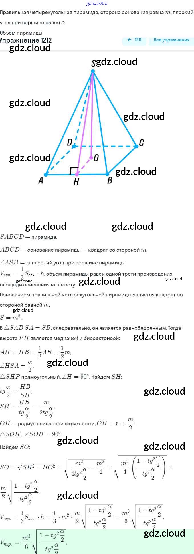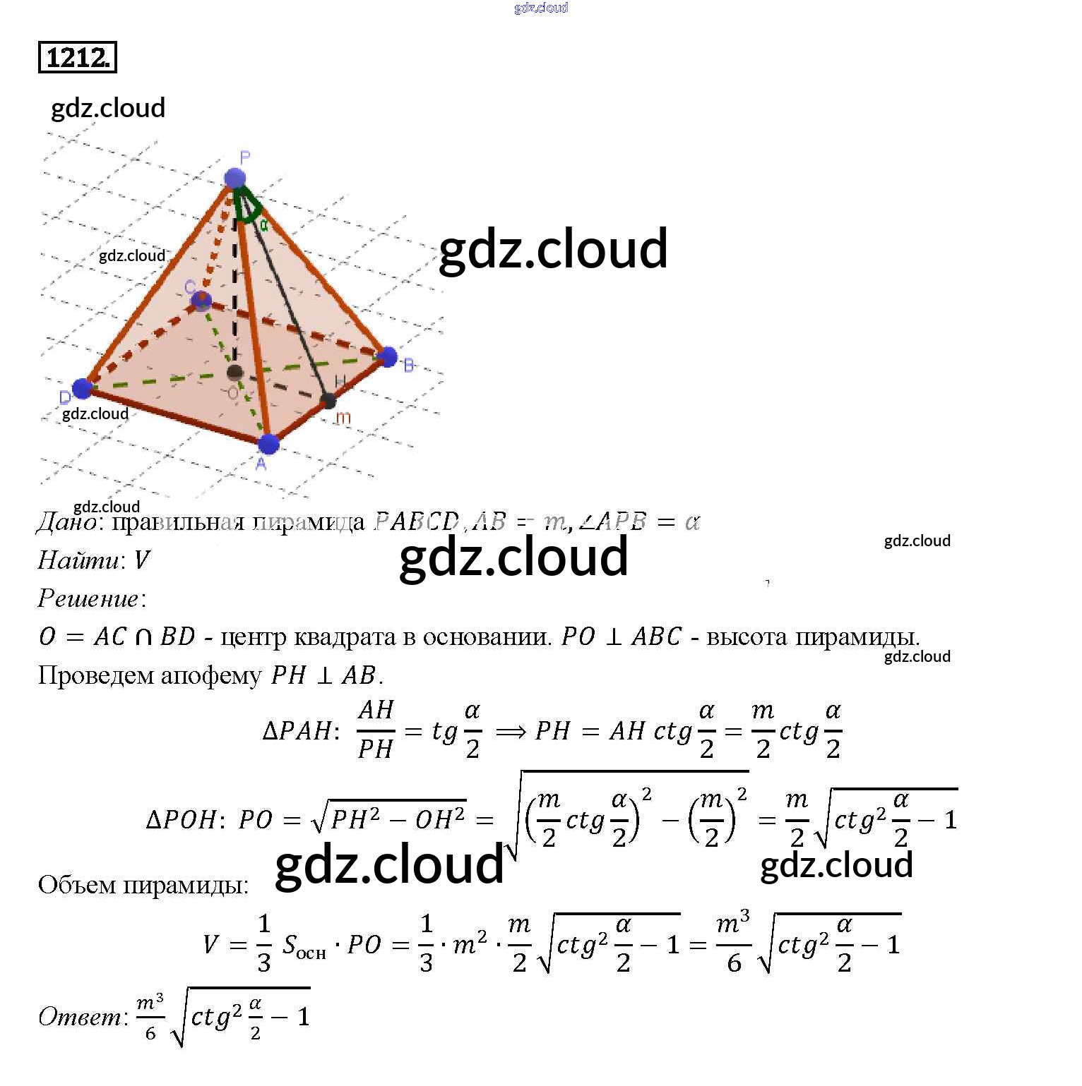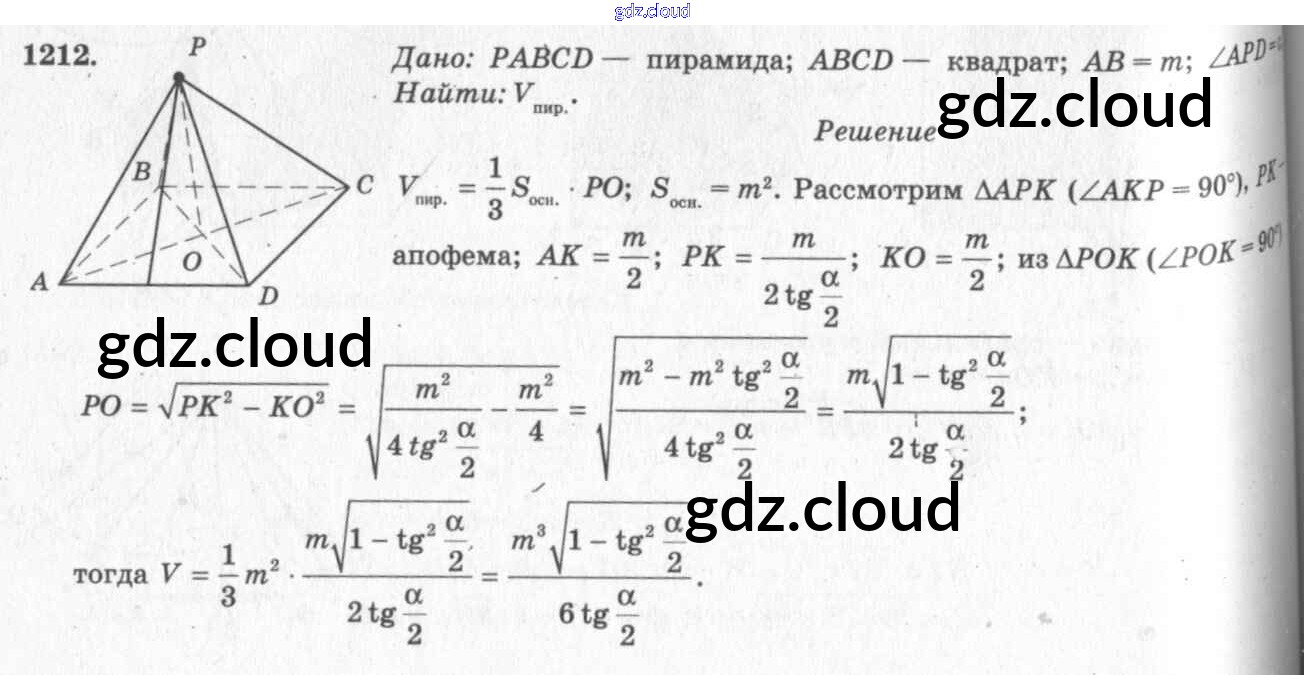 Ответ на задание 1212 Учебник Геометрия за 7, 8, 9 (седьмой, восьмой, девятый) класс Атанасян, Бутузов, Кадомцев 2010