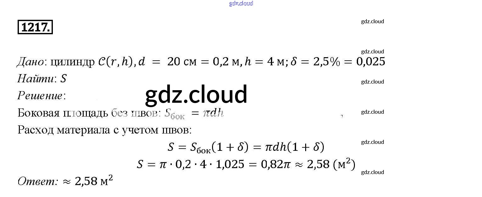 Ответ на задание 1217 Учебник Геометрия за 7, 8, 9 (седьмой, восьмой, девятый) класс Атанасян, Бутузов, Кадомцев 2010