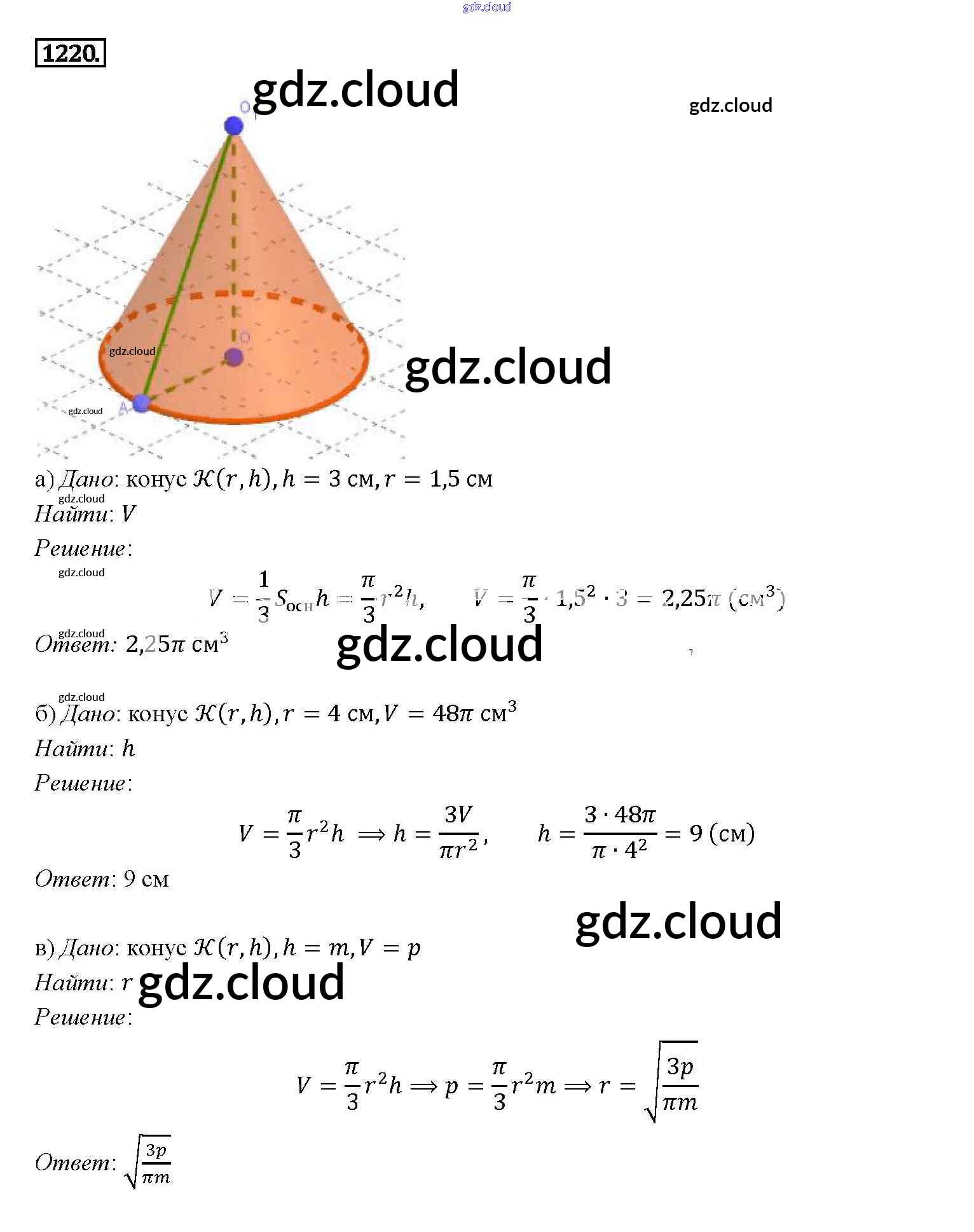 Ответ на задание 1220 Учебник Геометрия за 7, 8, 9 (седьмой, восьмой, девятый) класс Атанасян, Бутузов, Кадомцев 2010