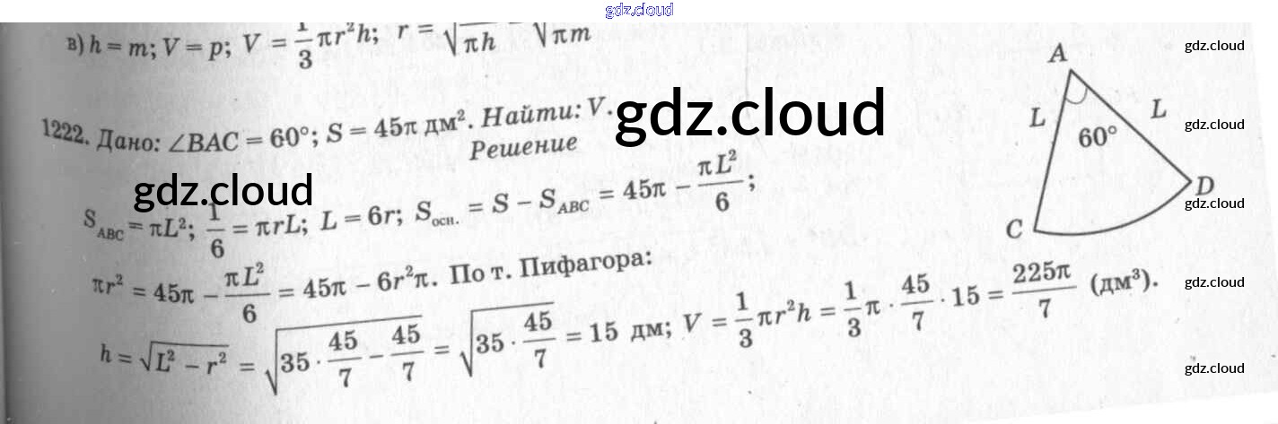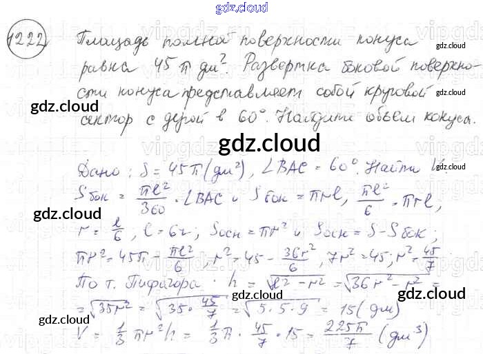 Ответ на задание 1222 Учебник Геометрия за 7, 8, 9 (седьмой, восьмой, девятый) класс Атанасян, Бутузов, Кадомцев 2010