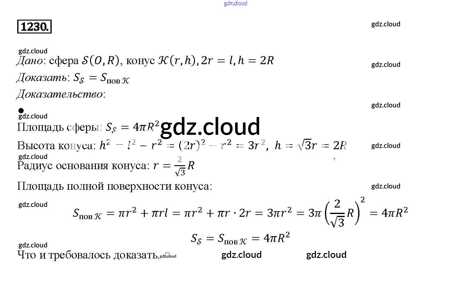 Ответ на задание 1230 Учебник Геометрия за 7, 8, 9 (седьмой, восьмой, девятый) класс Атанасян, Бутузов, Кадомцев 2010