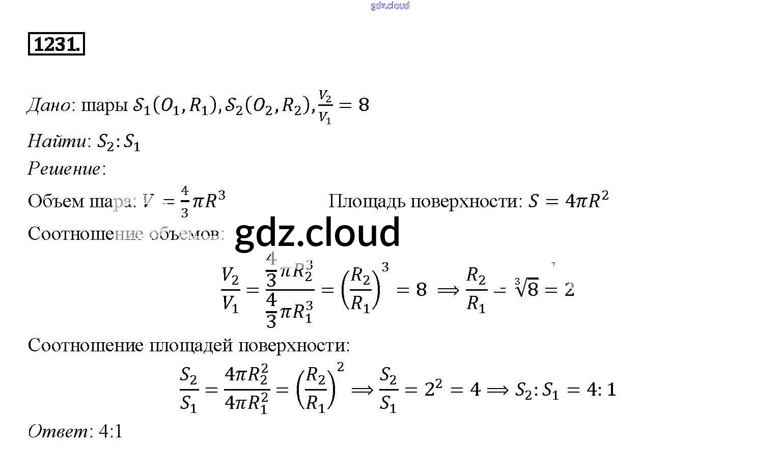 Ответ на задание 1231 Учебник Геометрия за 7, 8, 9 (седьмой, восьмой, девятый) класс Атанасян, Бутузов, Кадомцев 2010