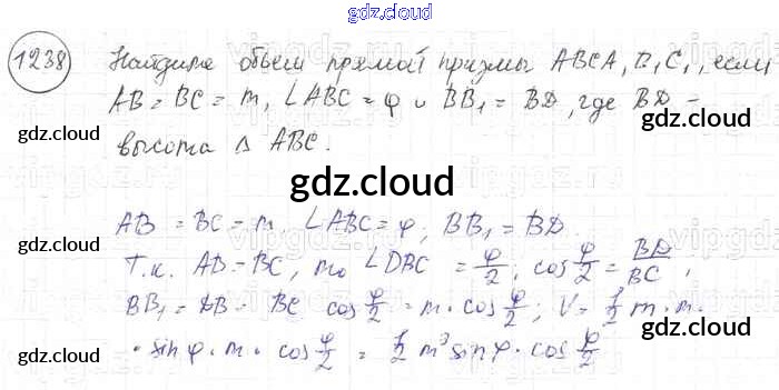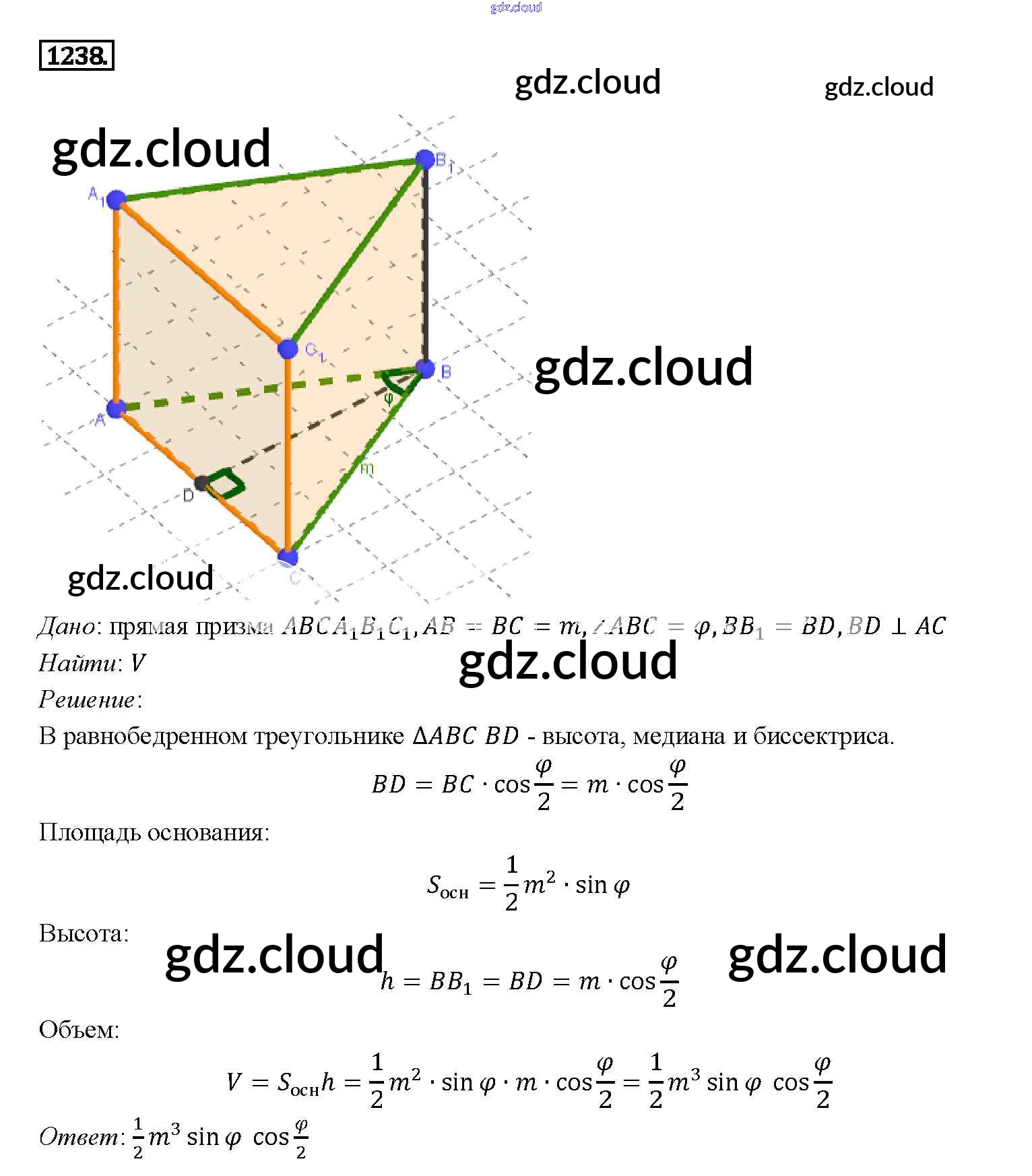 Ответ на задание 1238 Учебник Геометрия за 7, 8, 9 (седьмой, восьмой, девятый) класс Атанасян, Бутузов, Кадомцев 2010