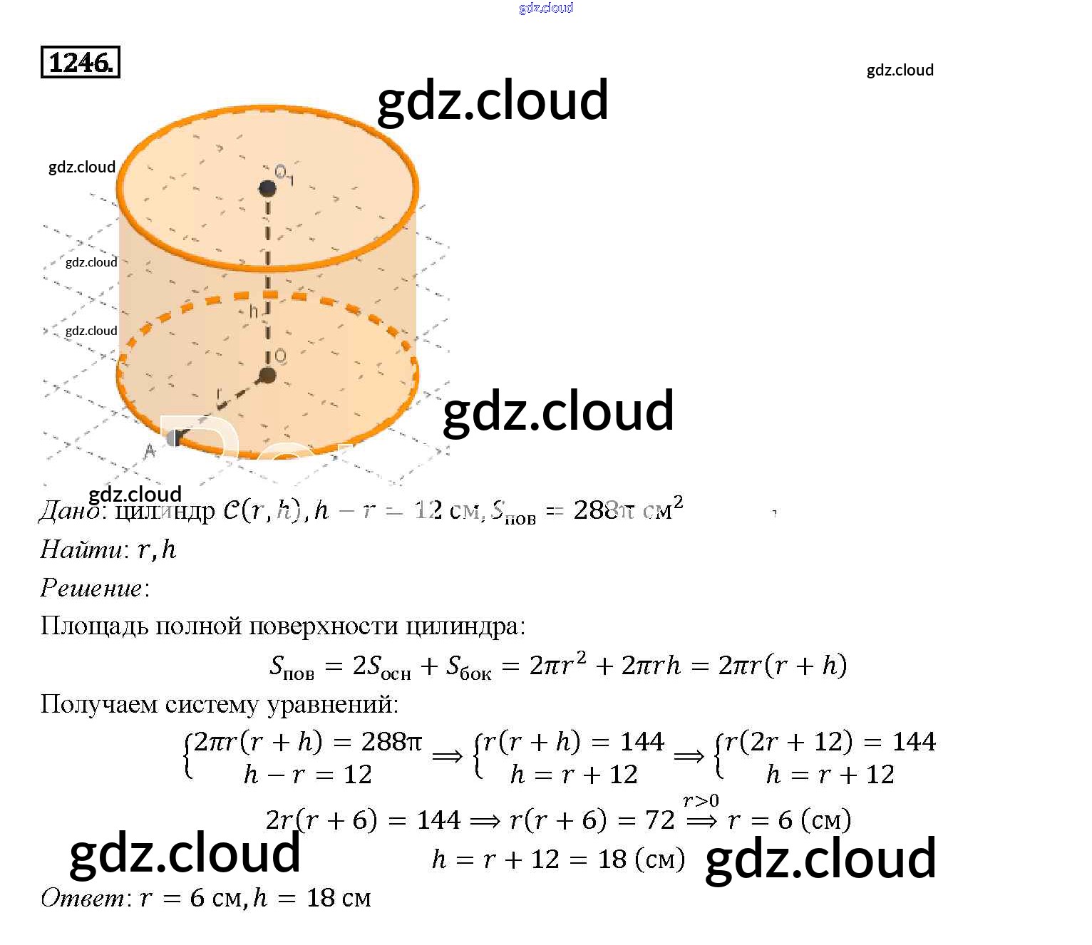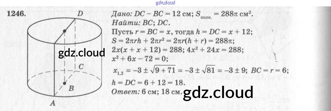 Ответ на задание 1246 Учебник Геометрия за 7, 8, 9 (седьмой, восьмой, девятый) класс Атанасян, Бутузов, Кадомцев 2010