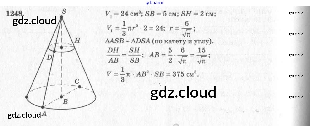 Ответ на задание 1248 Учебник Геометрия за 7, 8, 9 (седьмой, восьмой, девятый) класс Атанасян, Бутузов, Кадомцев 2010