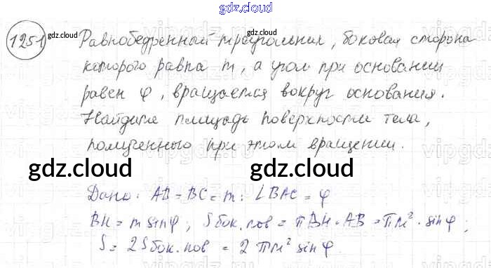 Ответ на задание 1251 Учебник Геометрия за 7, 8, 9 (седьмой, восьмой, девятый) класс Атанасян, Бутузов, Кадомцев 2010