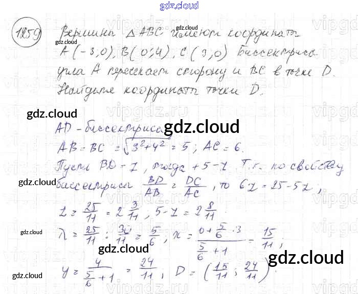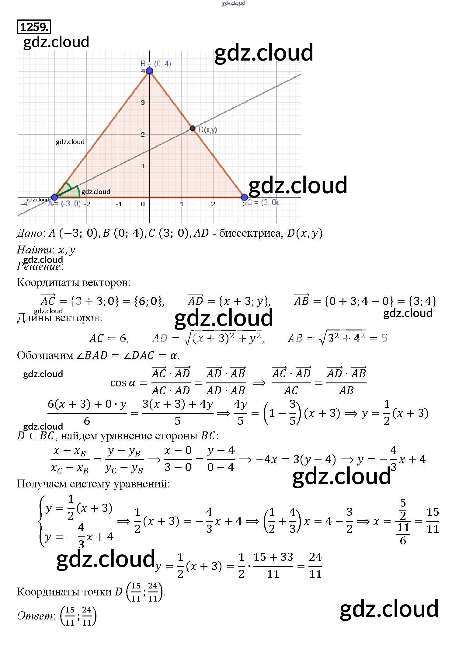 Ответ на задание 1259 Учебник Геометрия за 7, 8, 9 (седьмой, восьмой, девятый) класс Атанасян, Бутузов, Кадомцев 2010