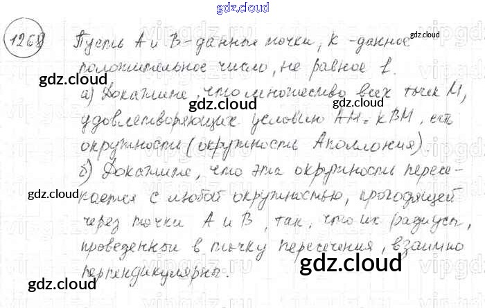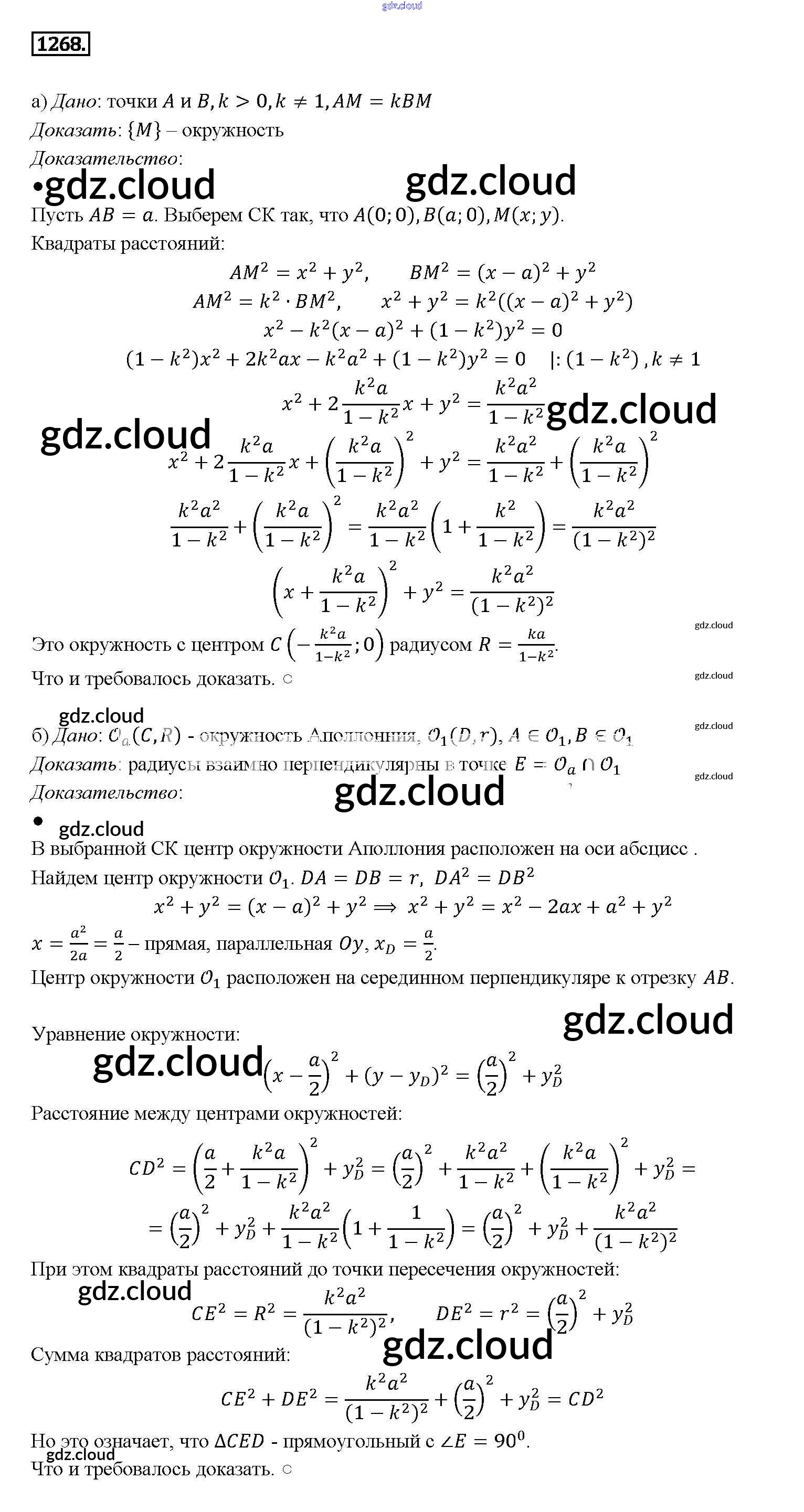 Ответ на задание 1268 Учебник Геометрия за 7, 8, 9 (седьмой, восьмой, девятый) класс Атанасян, Бутузов, Кадомцев 2010