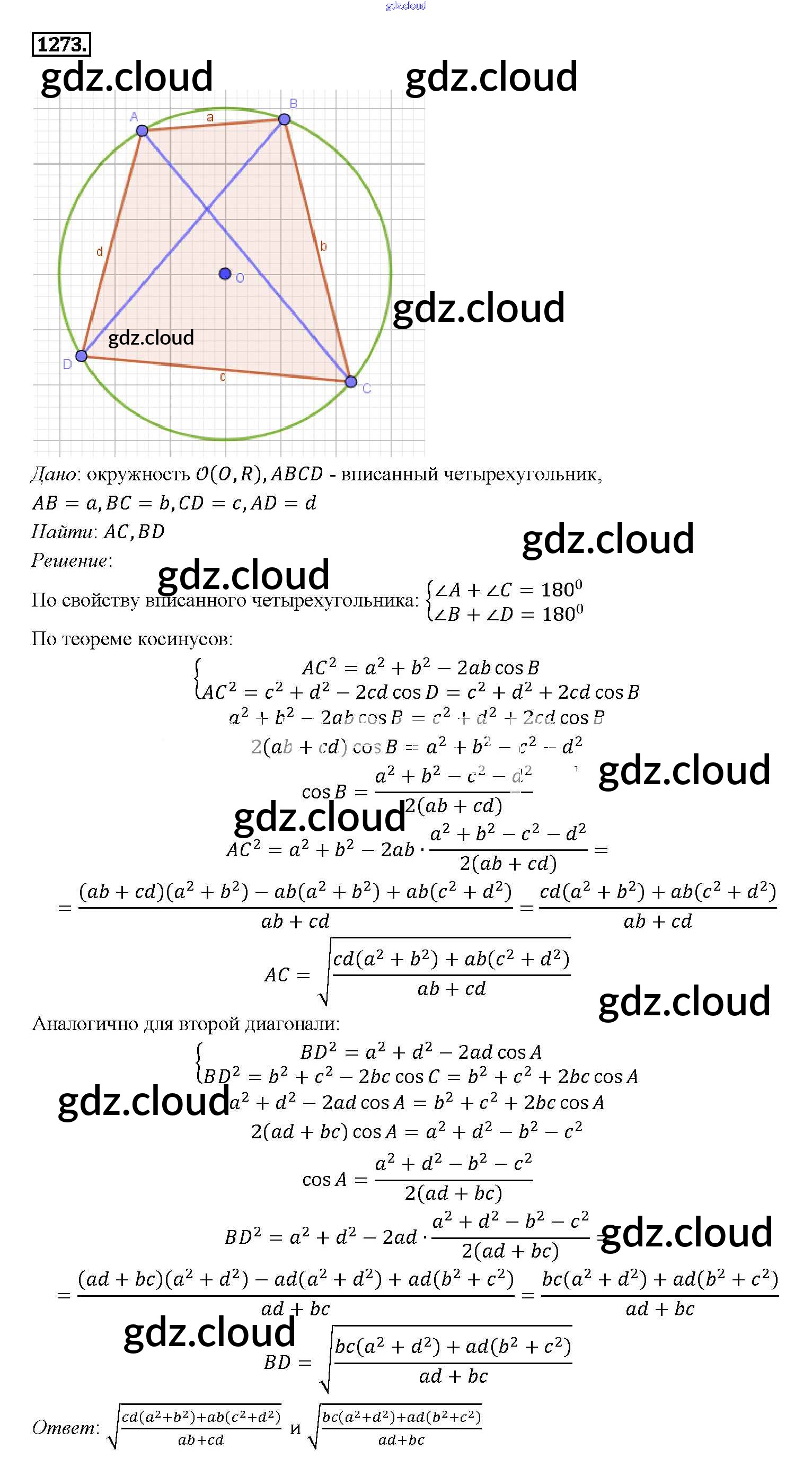 Ответ на задание 1273 Учебник Геометрия за 7, 8, 9 (седьмой, восьмой, девятый) класс Атанасян, Бутузов, Кадомцев 2010