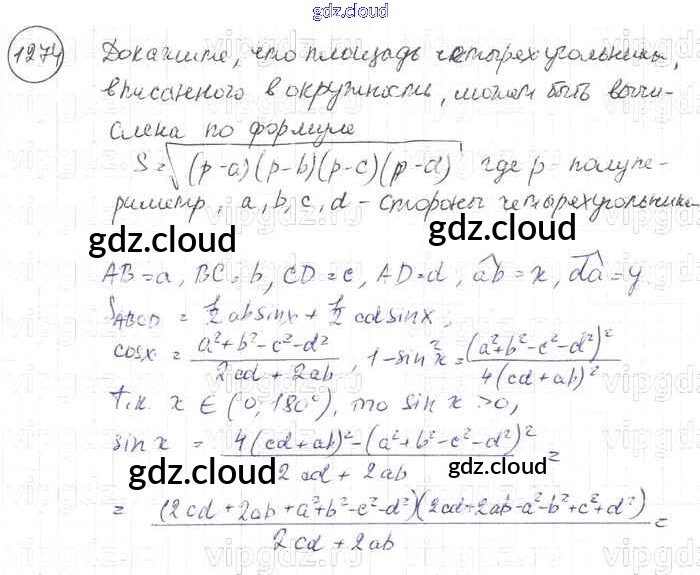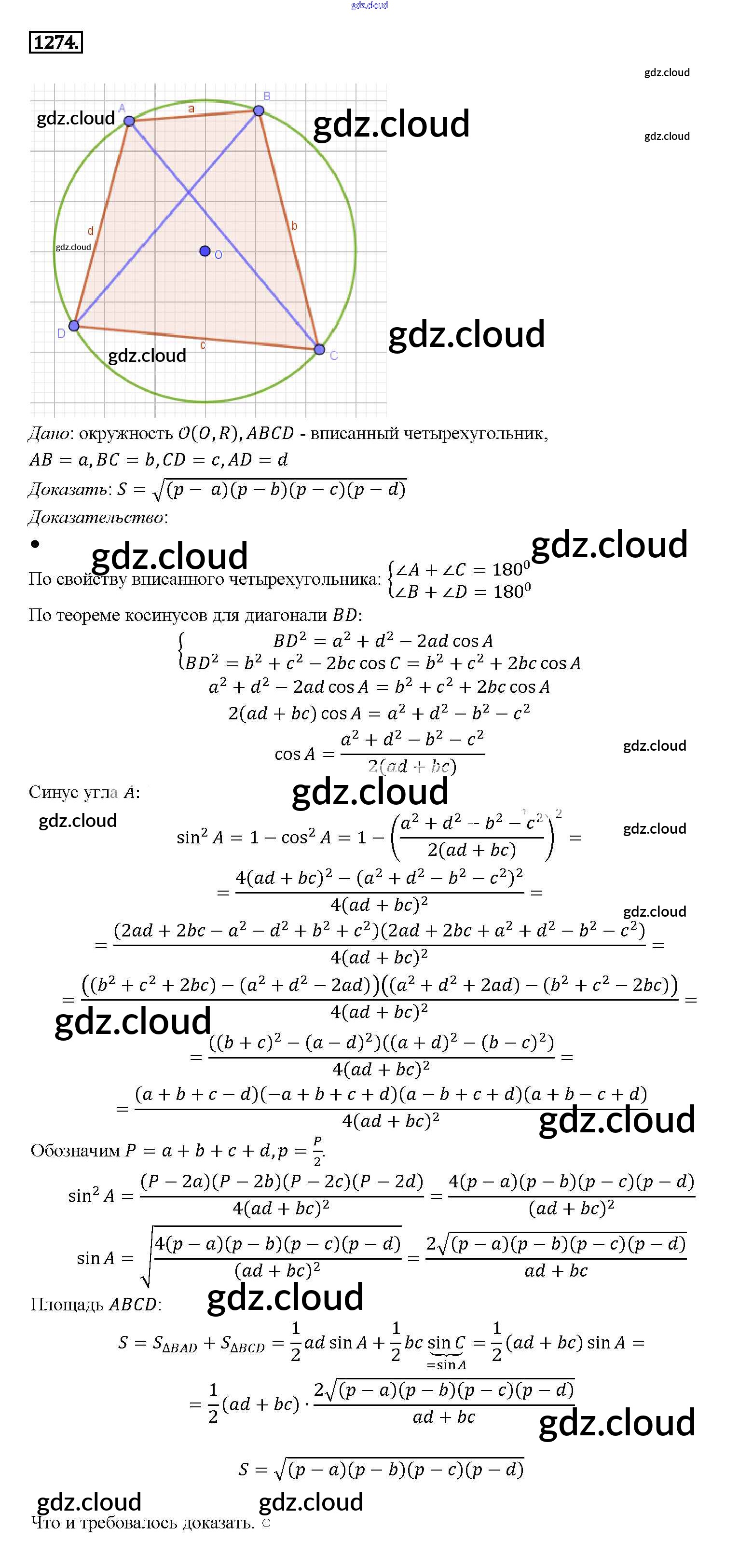 Ответ на задание 1274 Учебник Геометрия за 7, 8, 9 (седьмой, восьмой, девятый) класс Атанасян, Бутузов, Кадомцев 2010