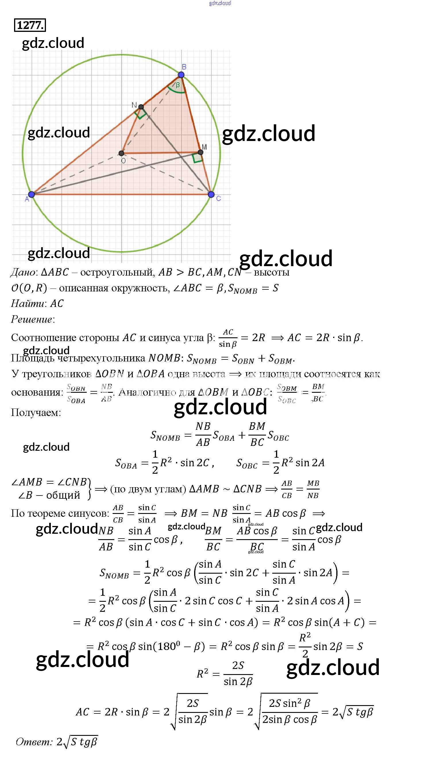Ответ на задание 1277 Учебник Геометрия за 7, 8, 9 (седьмой, восьмой, девятый) класс Атанасян, Бутузов, Кадомцев 2010