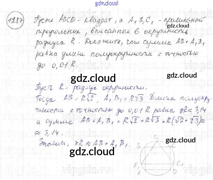 Ответ на задание 1287 Учебник Геометрия за 7, 8, 9 (седьмой, восьмой, девятый) класс Атанасян, Бутузов, Кадомцев 2010