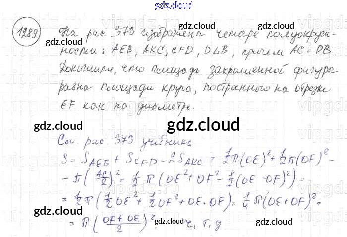Ответ на задание 1289 Учебник Геометрия за 7, 8, 9 (седьмой, восьмой, девятый) класс Атанасян, Бутузов, Кадомцев 2010