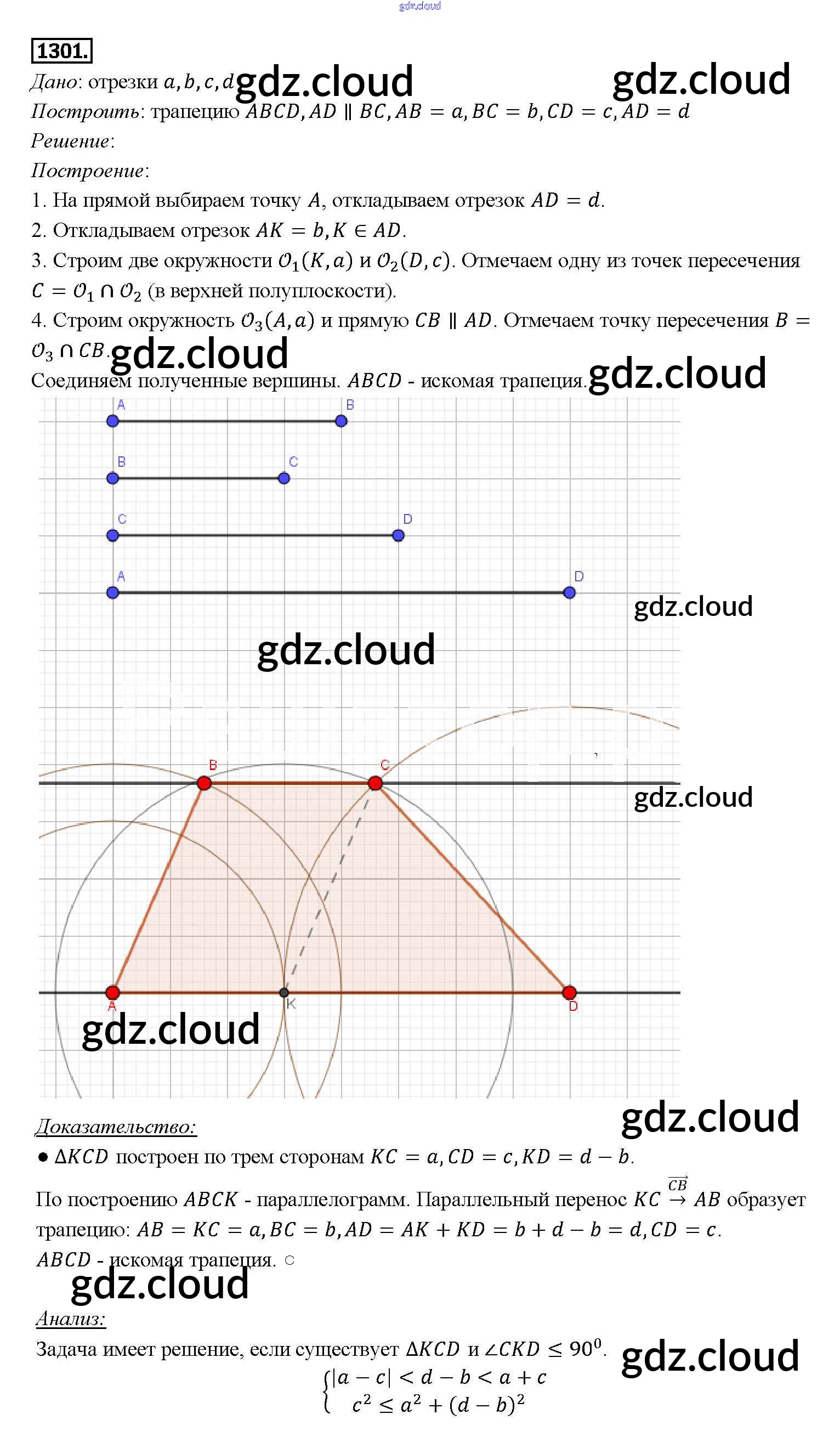 Ответ на задание 1301 Учебник Геометрия за 7, 8, 9 (седьмой, восьмой, девятый) класс Атанасян, Бутузов, Кадомцев 2010