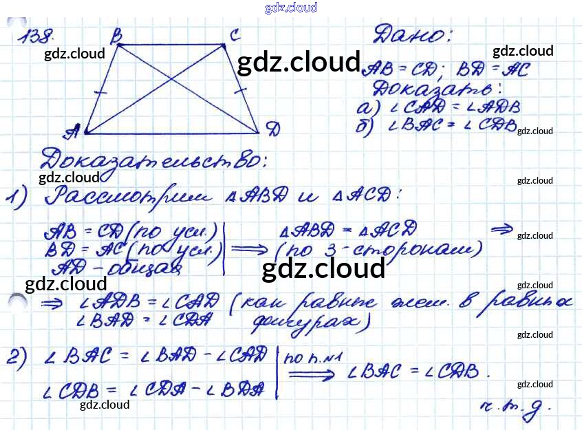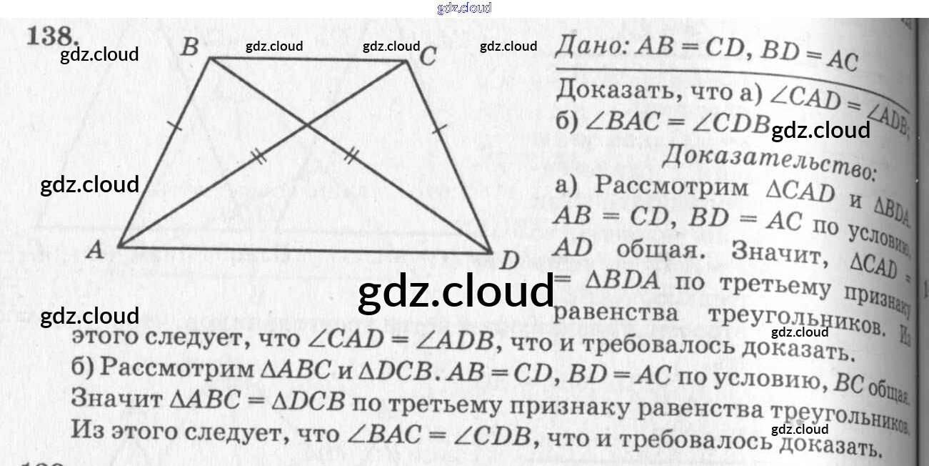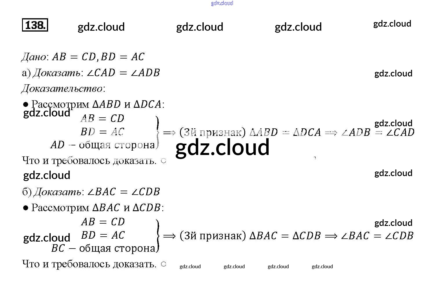 Ответ на задание 138 Учебник Геометрия за 7, 8, 9 (седьмой, восьмой, девятый) класс Атанасян, Бутузов, Кадомцев 2010