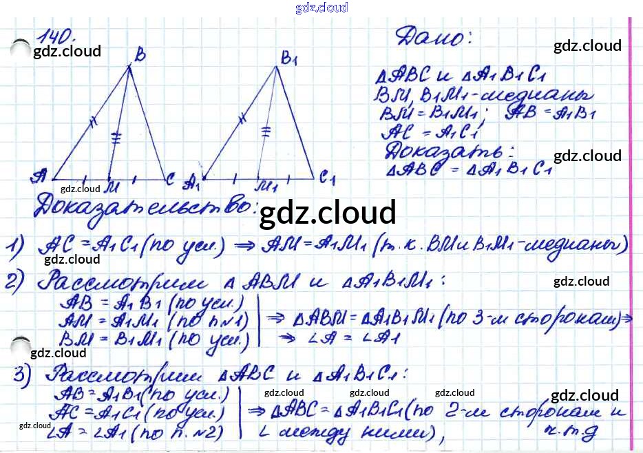 Ответ на задание 140 Учебник Геометрия за 7, 8, 9 (седьмой, восьмой, девятый) класс Атанасян, Бутузов, Кадомцев 2010