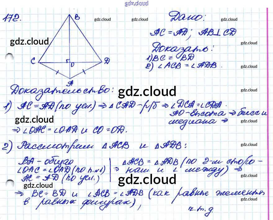 Ответ на задание 172 Учебник Геометрия за 7, 8, 9 (седьмой, восьмой, девятый) класс Атанасян, Бутузов, Кадомцев 2010