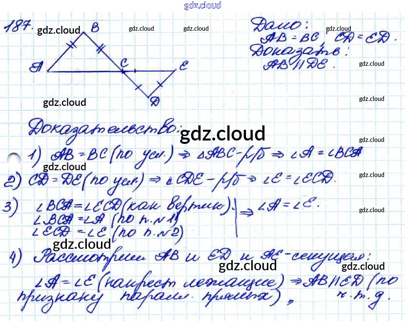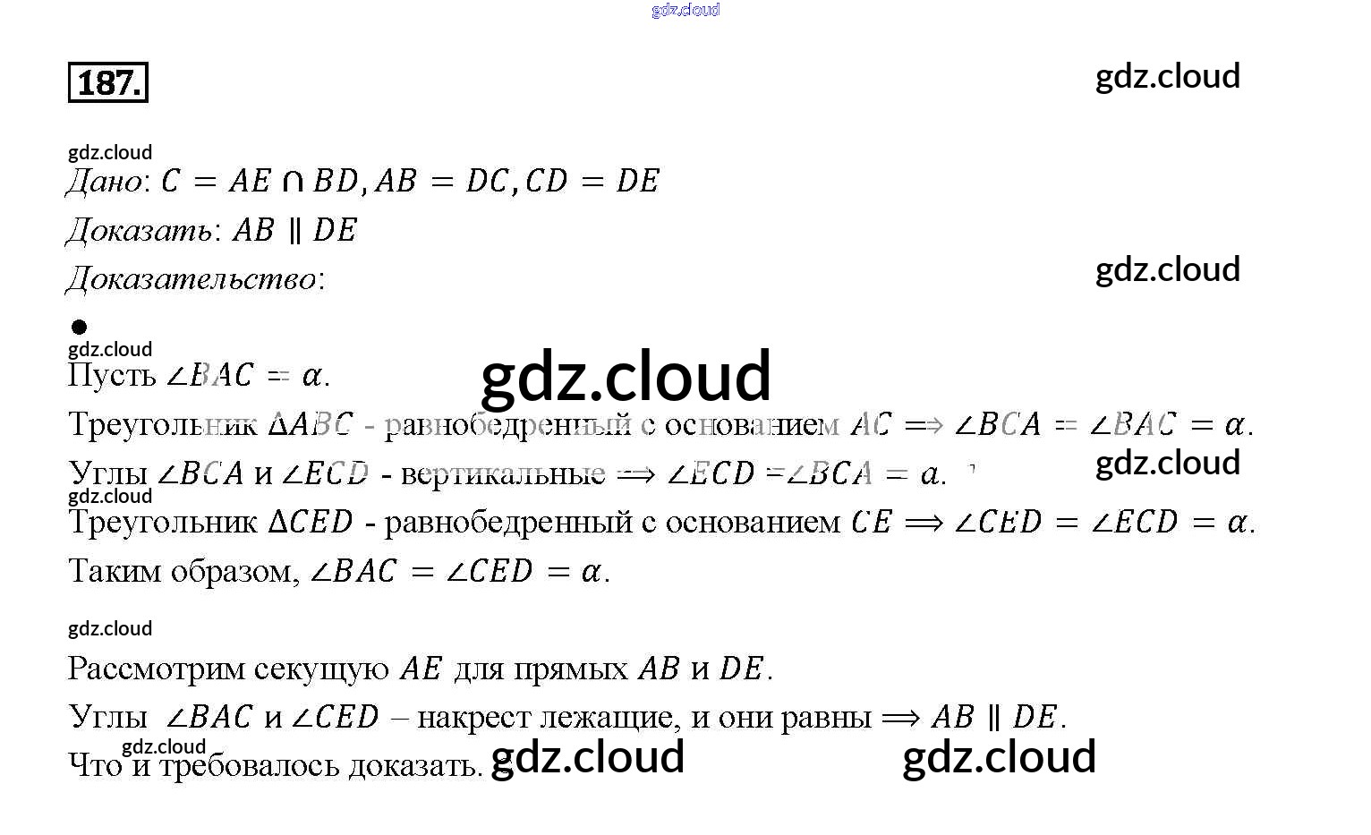 Ответ на задание 187 Учебник Геометрия за 7, 8, 9 (седьмой, восьмой, девятый) класс Атанасян, Бутузов, Кадомцев 2010