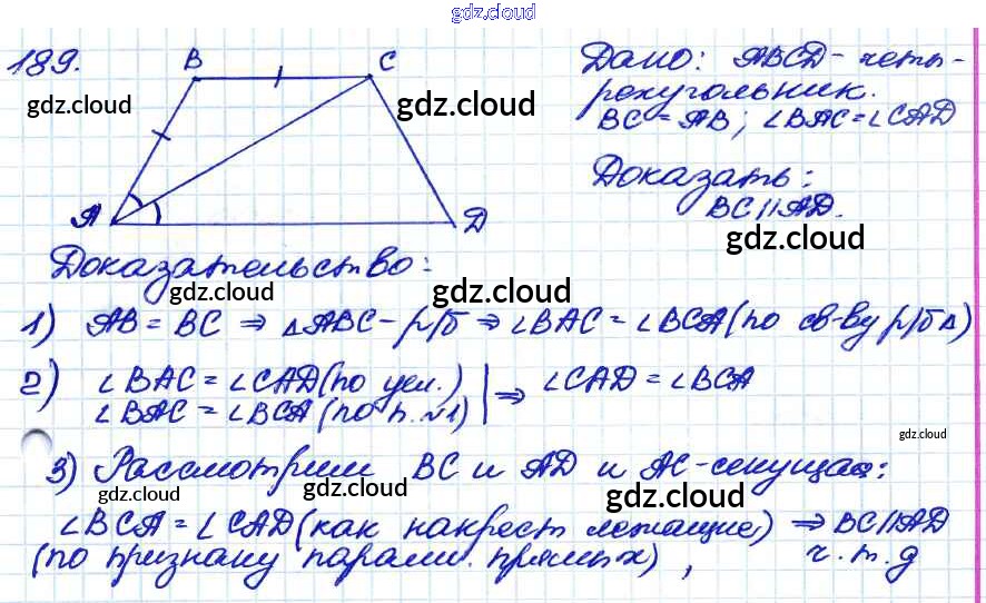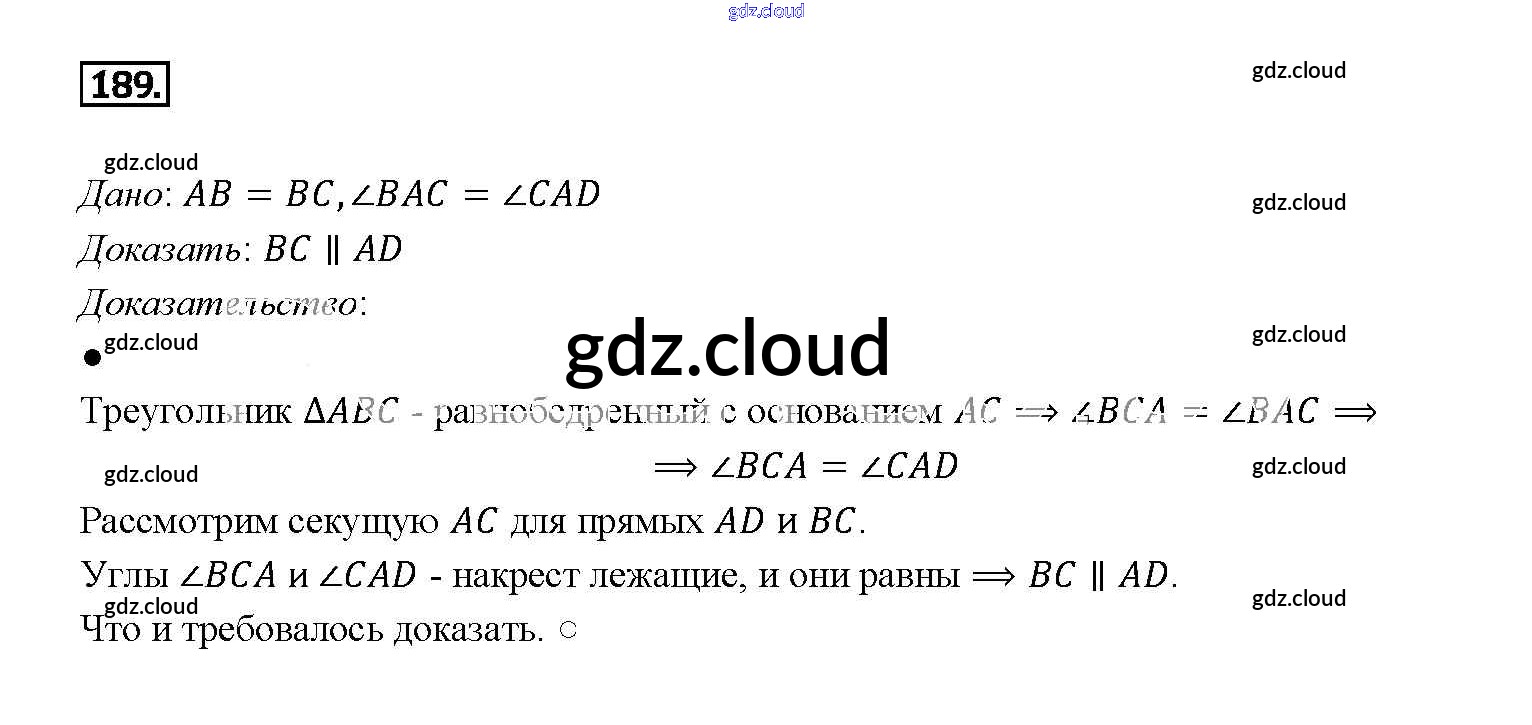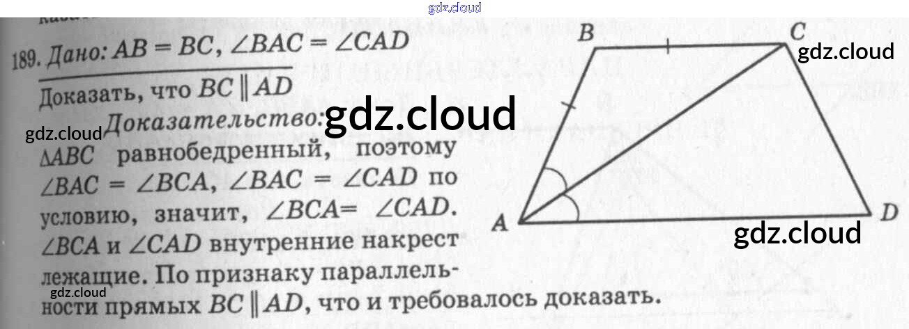 Ответ на задание 189 Учебник Геометрия за 7, 8, 9 (седьмой, восьмой, девятый) класс Атанасян, Бутузов, Кадомцев 2010