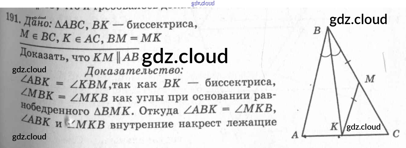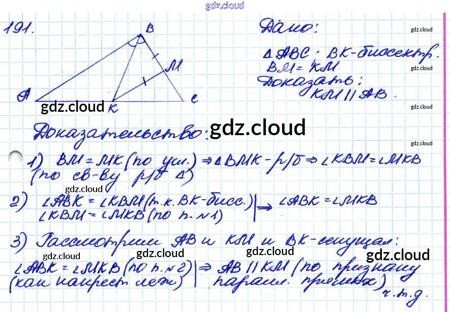 Ответ на задание 191 Учебник Геометрия за 7, 8, 9 (седьмой, восьмой, девятый) класс Атанасян, Бутузов, Кадомцев 2010