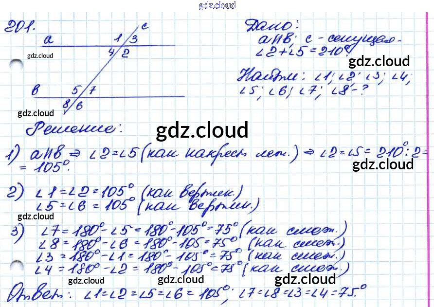 Ответ на задание 201 Учебник Геометрия за 7, 8, 9 (седьмой, восьмой, девятый) класс Атанасян, Бутузов, Кадомцев 2010