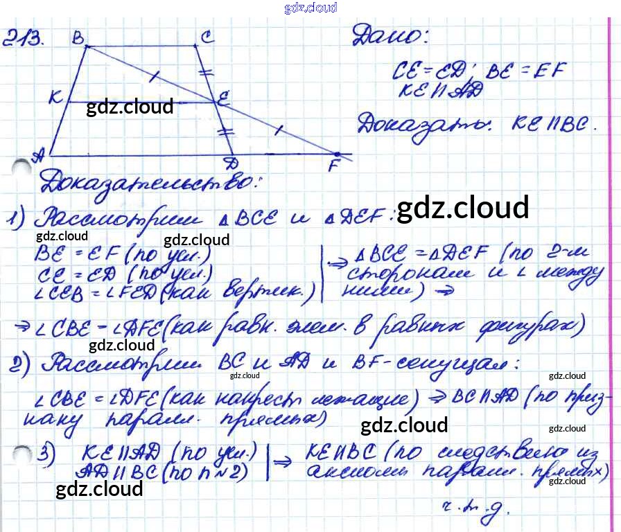 Ответ на задание 213 Учебник Геометрия за 7, 8, 9 (седьмой, восьмой, девятый) класс Атанасян, Бутузов, Кадомцев 2010