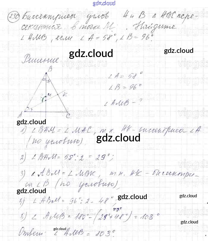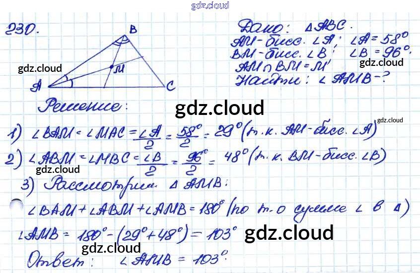 Ответ на задание 230 Учебник Геометрия за 7, 8, 9 (седьмой, восьмой, девятый) класс Атанасян, Бутузов, Кадомцев 2010