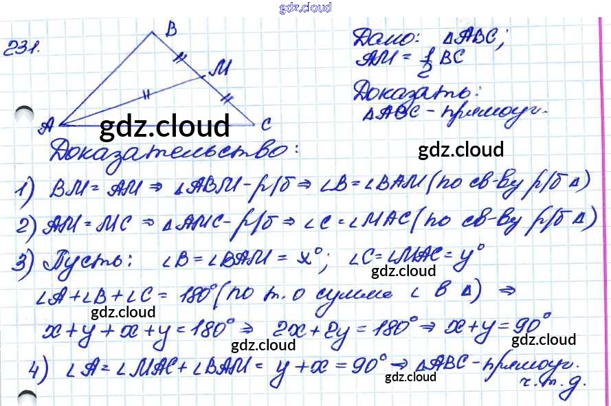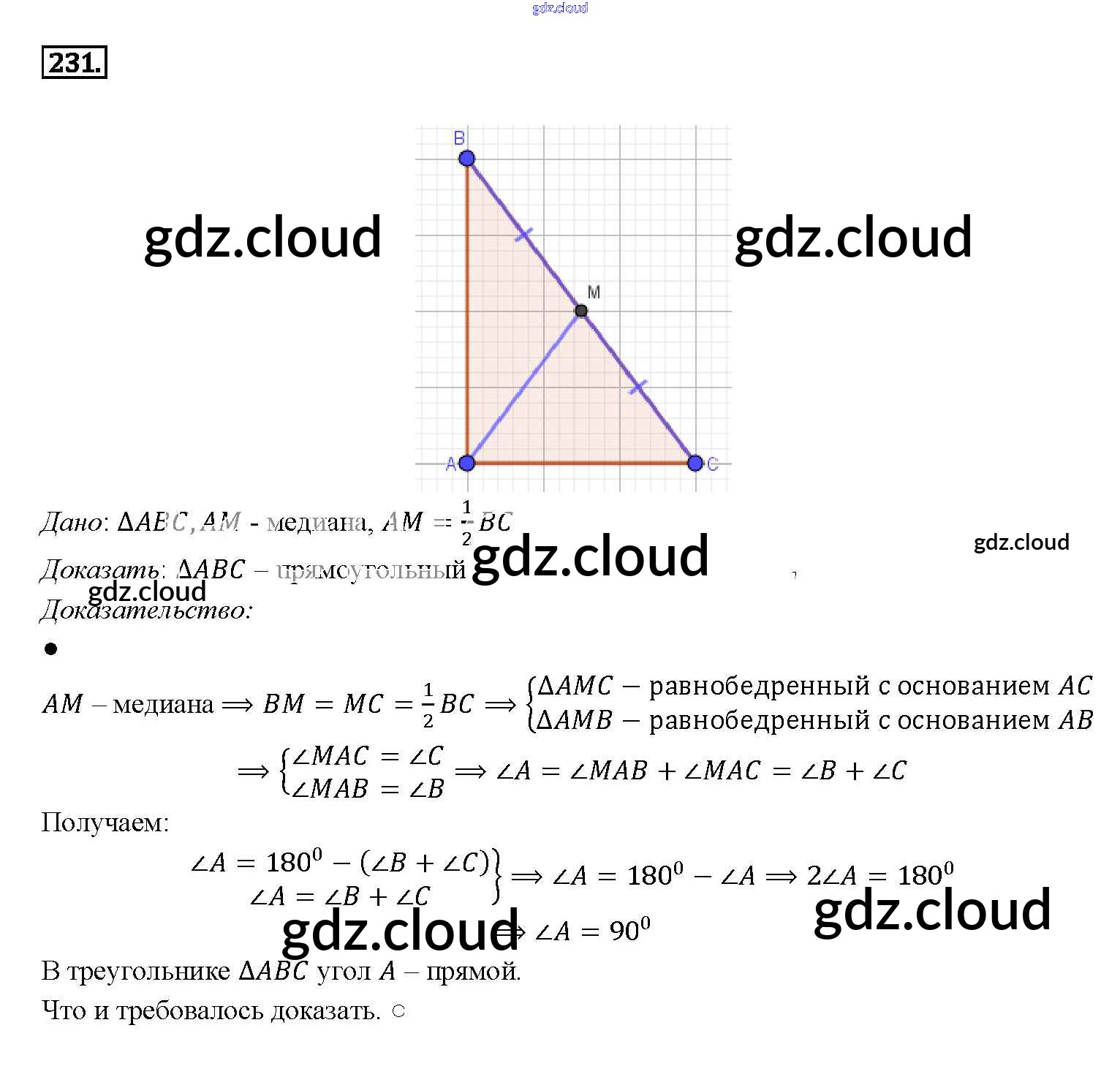 Ответ на задание 231 Учебник Геометрия за 7, 8, 9 (седьмой, восьмой, девятый) класс Атанасян, Бутузов, Кадомцев 2010