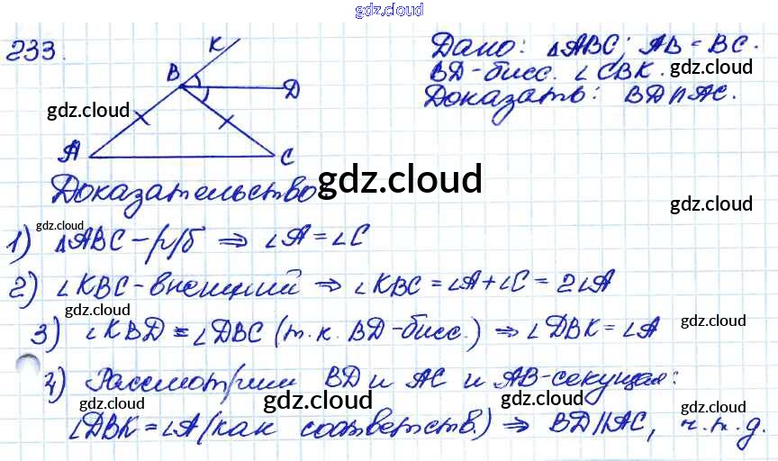 Ответ на задание 233 Учебник Геометрия за 7, 8, 9 (седьмой, восьмой, девятый) класс Атанасян, Бутузов, Кадомцев 2010