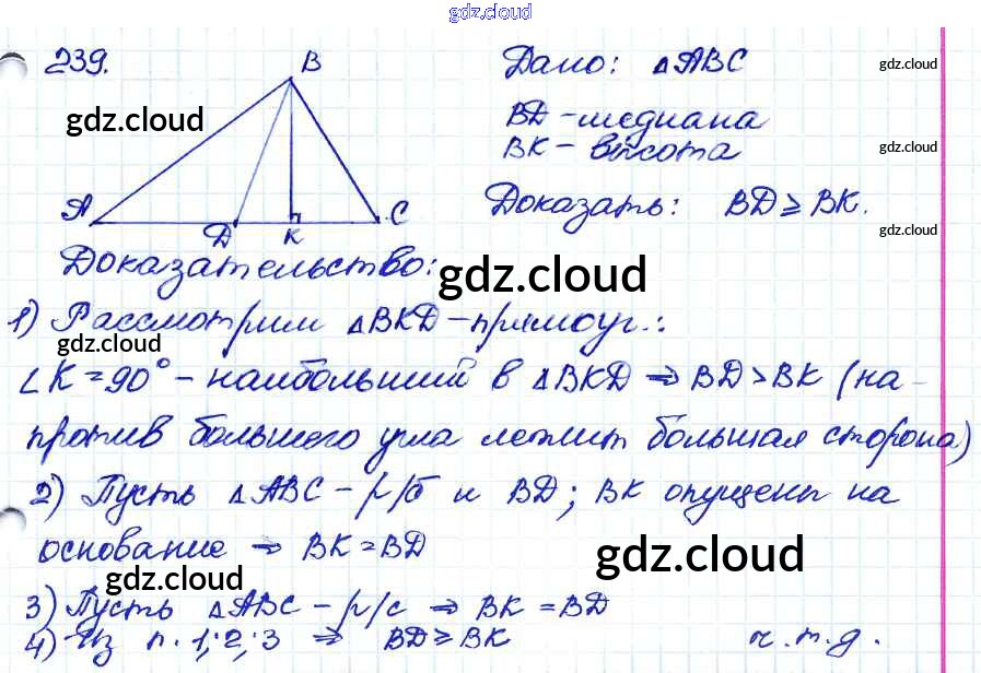 Ответ на задание 239 Учебник Геометрия за 7, 8, 9 (седьмой, восьмой, девятый) класс Атанасян, Бутузов, Кадомцев 2010