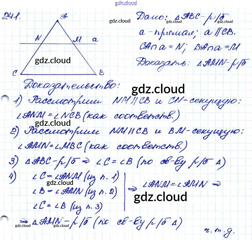 Ответ на задание 241 Учебник Геометрия за 7, 8, 9 (седьмой, восьмой, девятый) класс Атанасян, Бутузов, Кадомцев 2010