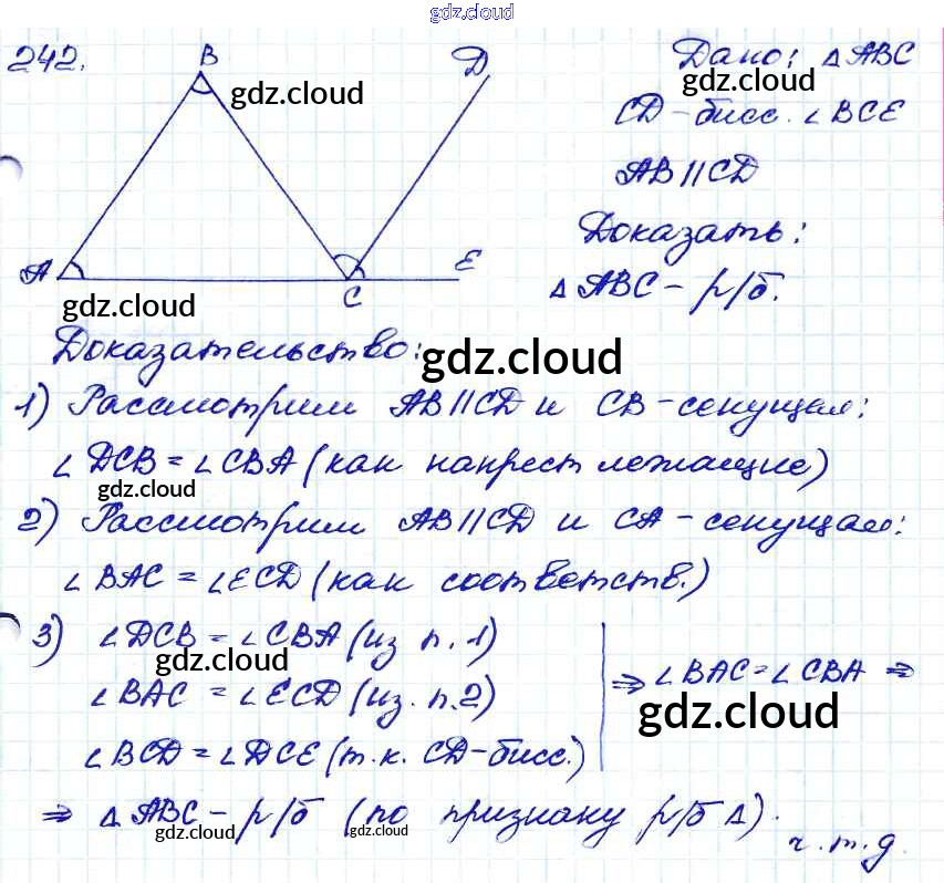 Ответ на задание 242 Учебник Геометрия за 7, 8, 9 (седьмой, восьмой, девятый) класс Атанасян, Бутузов, Кадомцев 2010