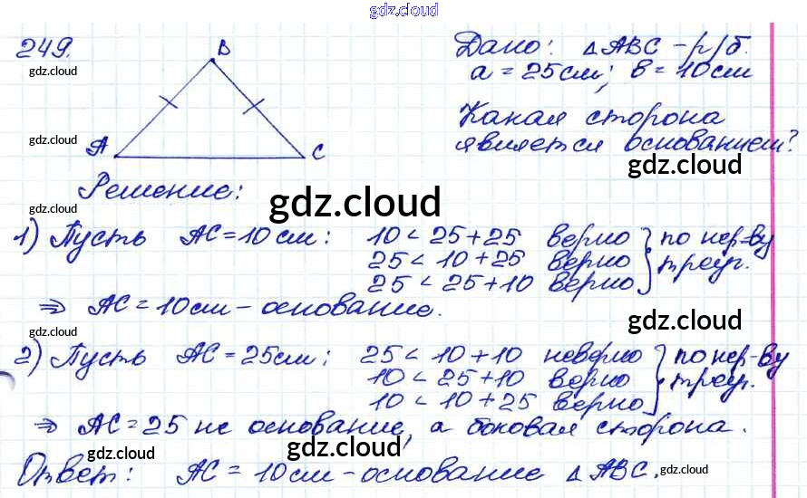 Ответ на задание 249 Учебник Геометрия за 7, 8, 9 (седьмой, восьмой, девятый) класс Атанасян, Бутузов, Кадомцев 2010
