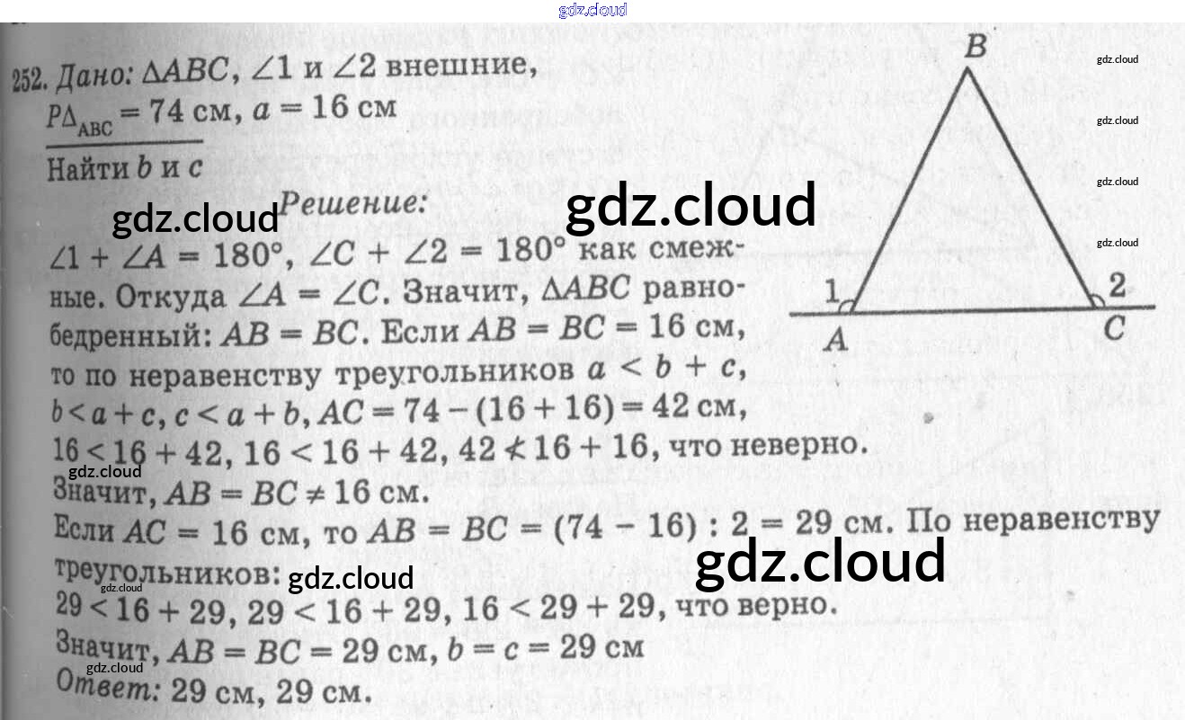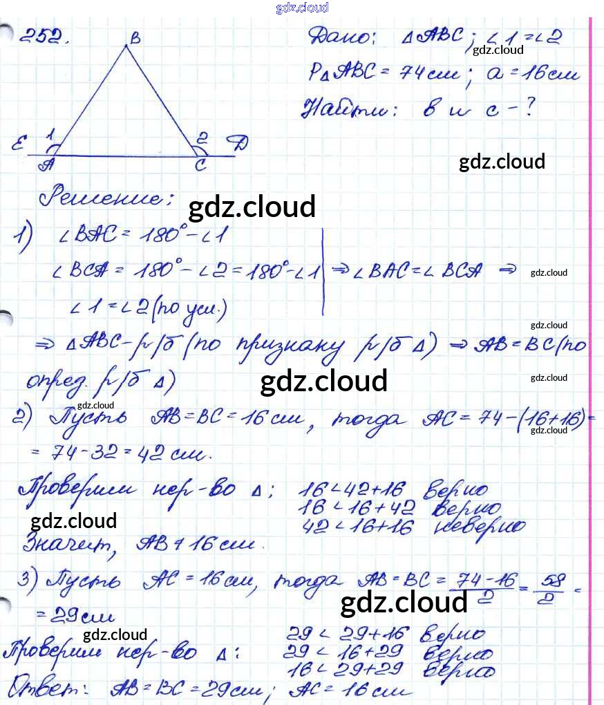 Ответ на задание 252 Учебник Геометрия за 7, 8, 9 (седьмой, восьмой, девятый) класс Атанасян, Бутузов, Кадомцев 2010