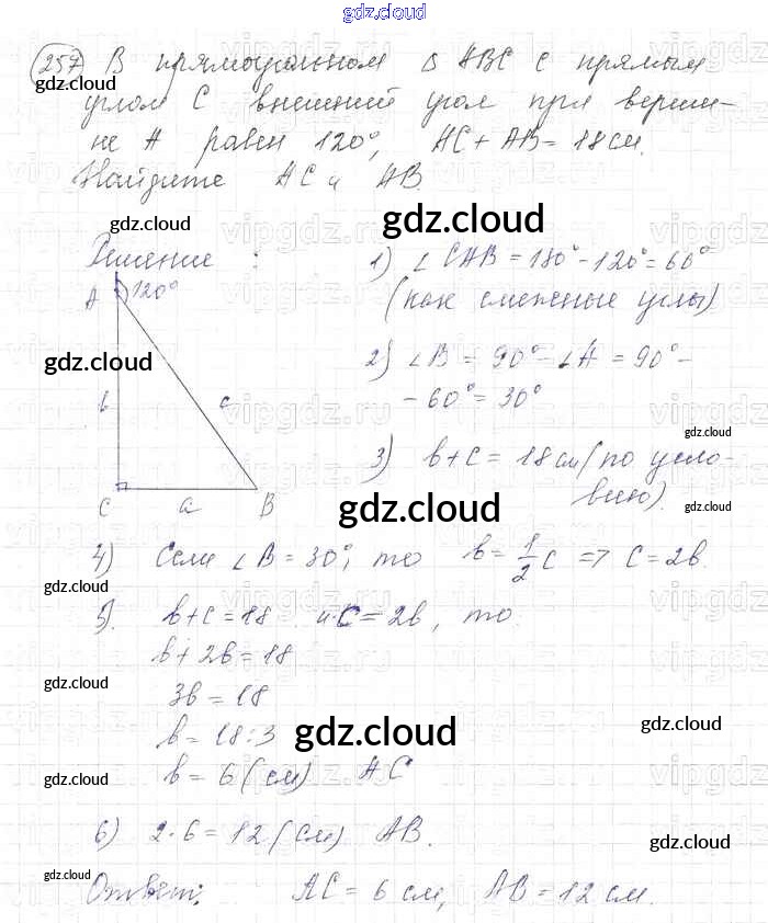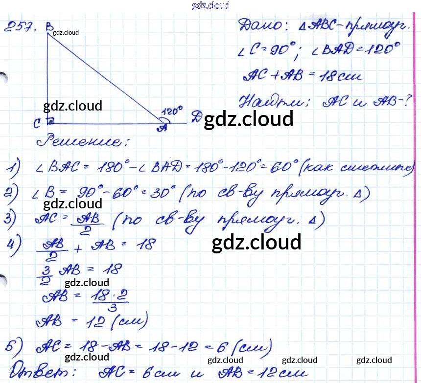 Ответ на задание 257 Учебник Геометрия за 7, 8, 9 (седьмой, восьмой, девятый) класс Атанасян, Бутузов, Кадомцев 2010
