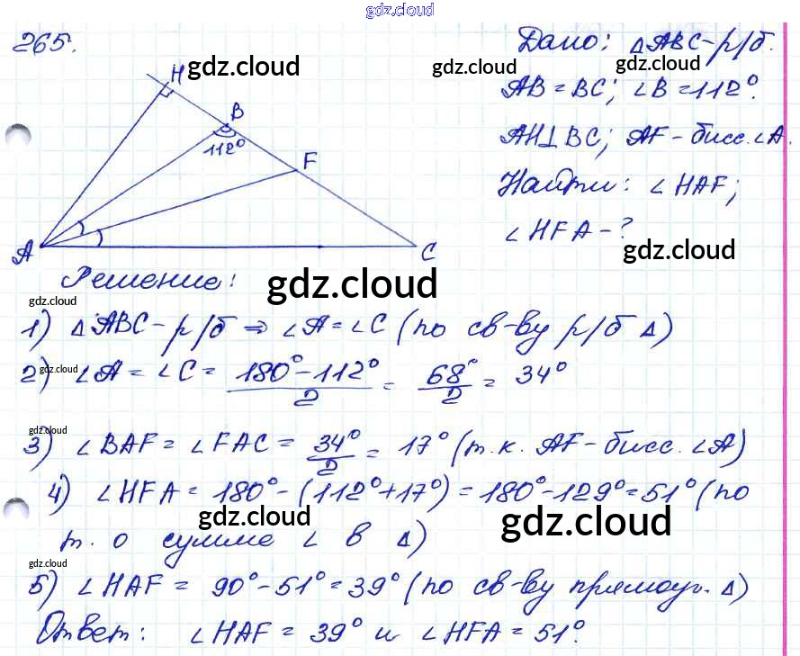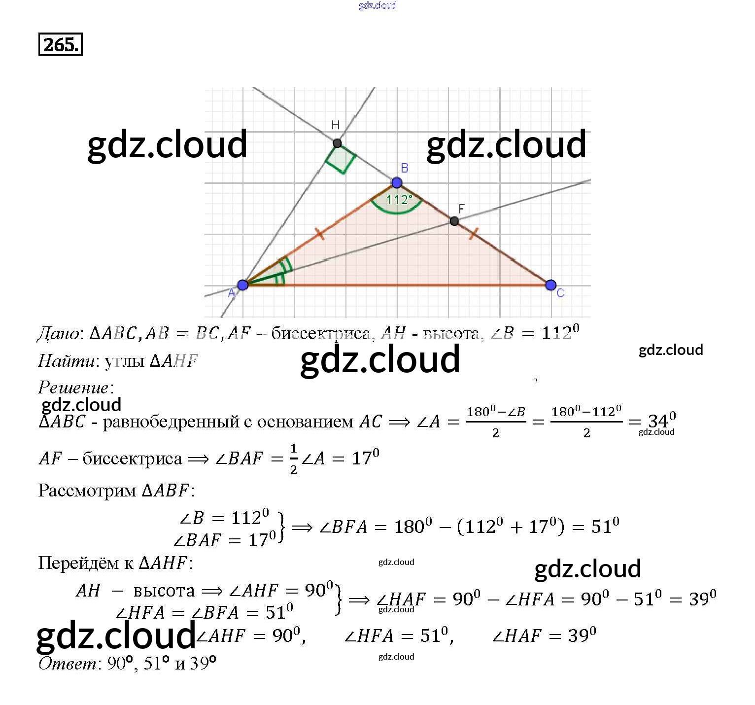Ответ на задание 265 Учебник Геометрия за 7, 8, 9 (седьмой, восьмой, девятый) класс Атанасян, Бутузов, Кадомцев 2010