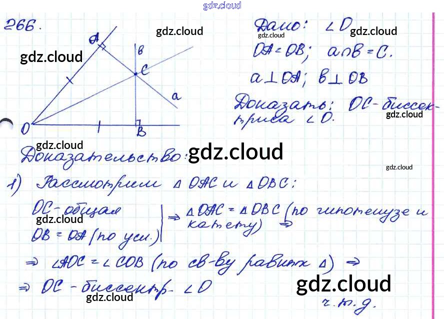 Ответ на задание 266 Учебник Геометрия за 7, 8, 9 (седьмой, восьмой, девятый) класс Атанасян, Бутузов, Кадомцев 2010