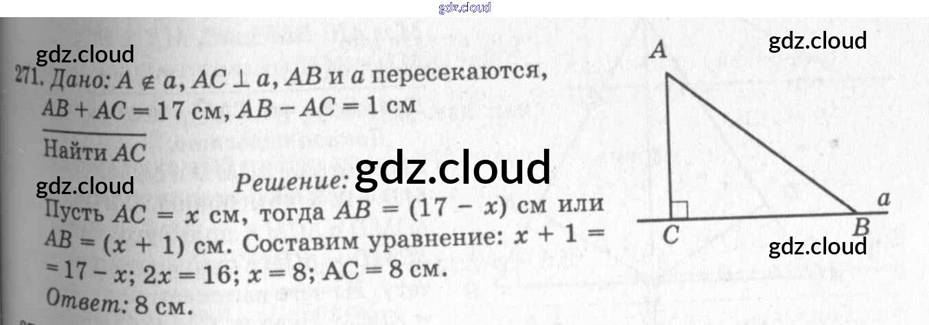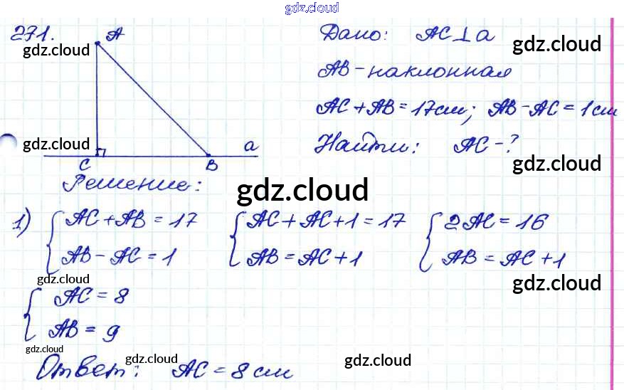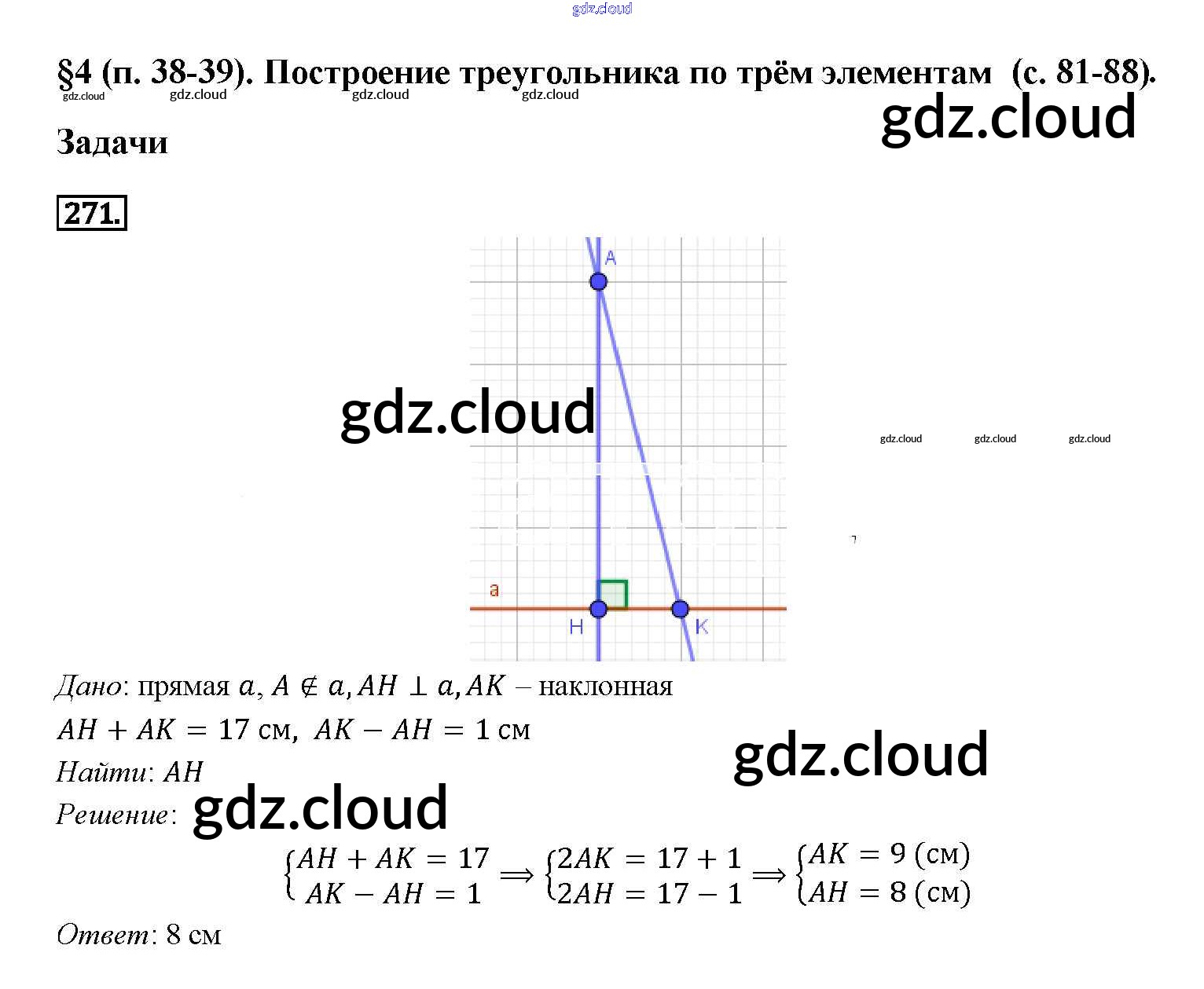 Ответ на задание 271 Учебник Геометрия за 7, 8, 9 (седьмой, восьмой, девятый) класс Атанасян, Бутузов, Кадомцев 2010