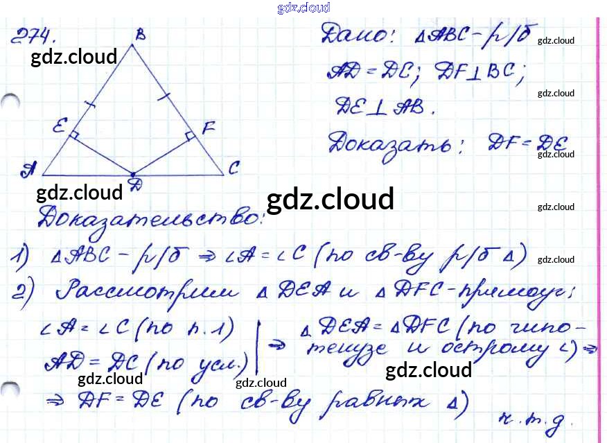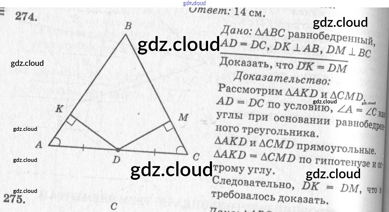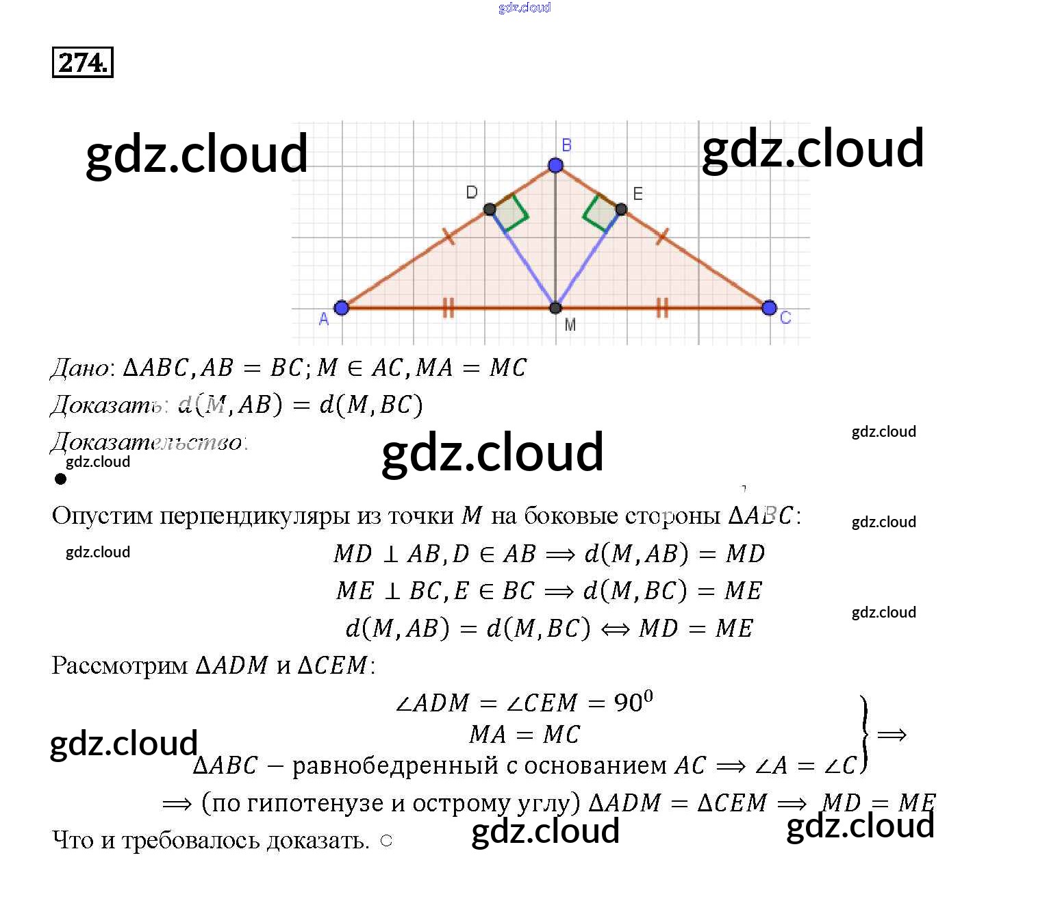 Ответ на задание 274 Учебник Геометрия за 7, 8, 9 (седьмой, восьмой, девятый) класс Атанасян, Бутузов, Кадомцев 2010