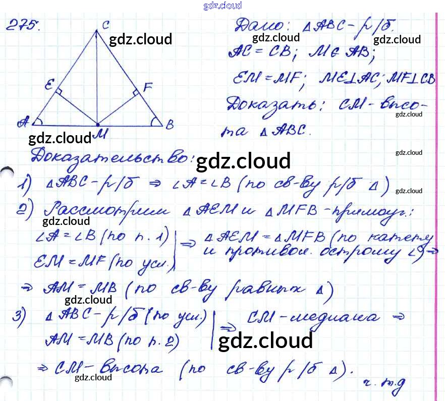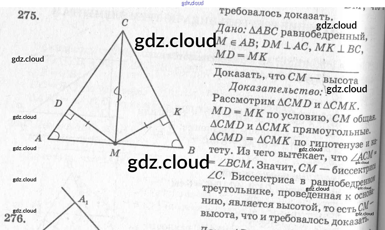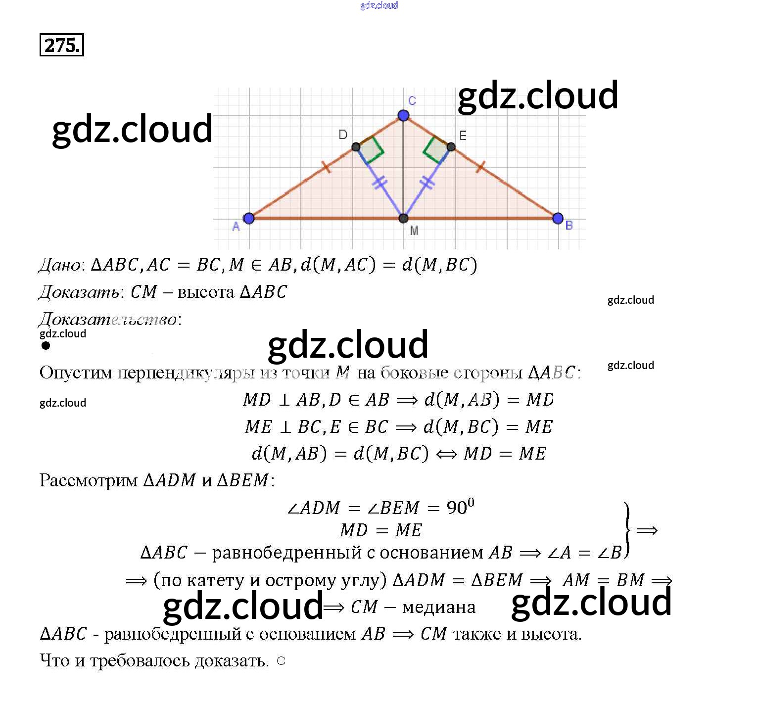 Ответ на задание 275 Учебник Геометрия за 7, 8, 9 (седьмой, восьмой, девятый) класс Атанасян, Бутузов, Кадомцев 2010