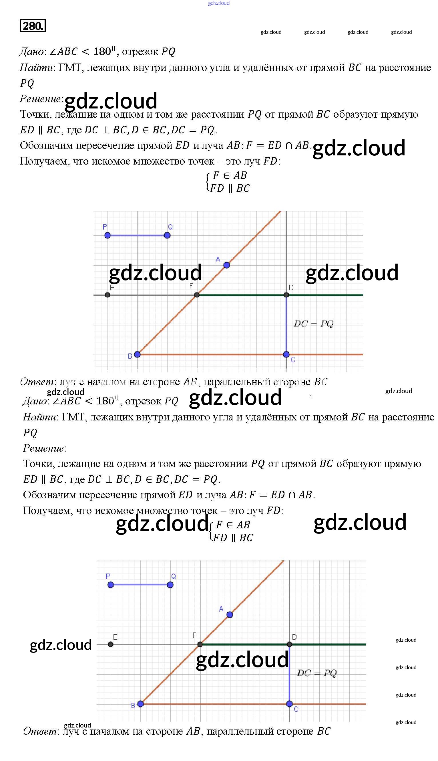 Ответ на задание 280 Учебник Геометрия за 7, 8, 9 (седьмой, восьмой, девятый) класс Атанасян, Бутузов, Кадомцев 2010
