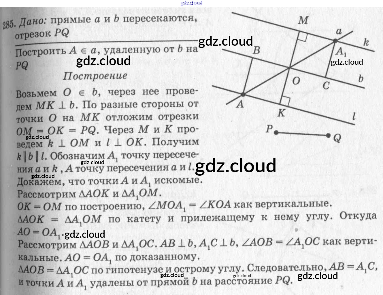 Ответ на задание 285 Учебник Геометрия за 7, 8, 9 (седьмой, восьмой, девятый) класс Атанасян, Бутузов, Кадомцев 2010