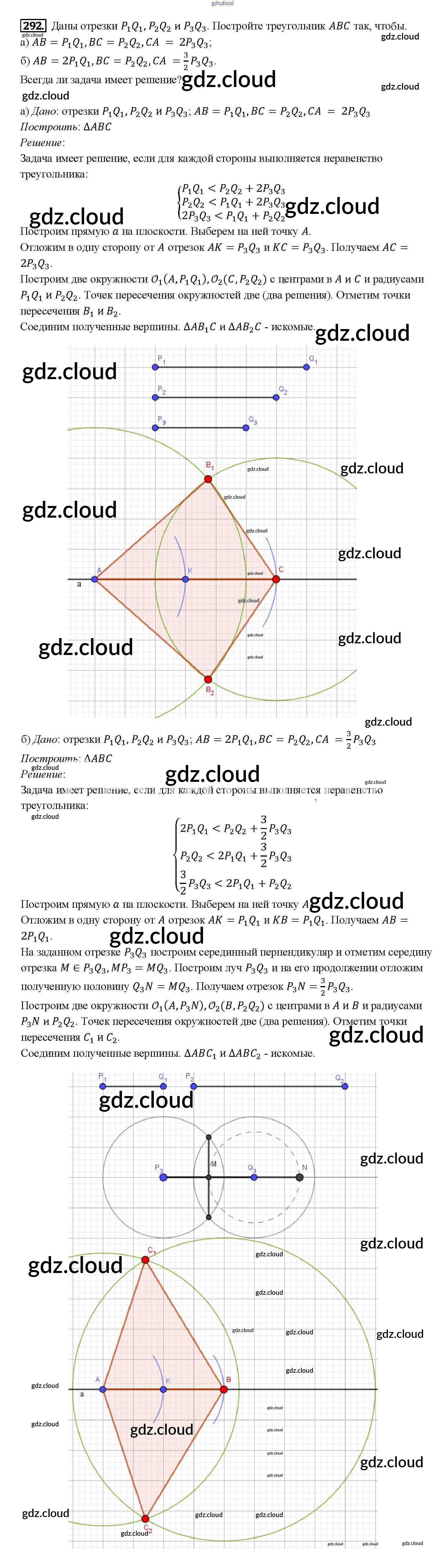 Ответ на задание 292 Учебник Геометрия за 7, 8, 9 (седьмой, восьмой, девятый) класс Атанасян, Бутузов, Кадомцев 2010