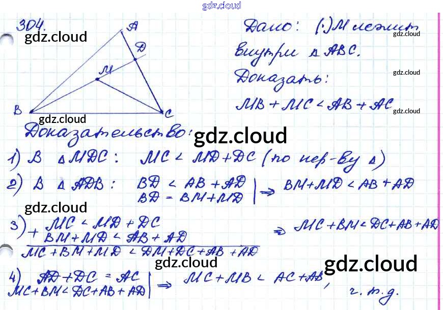 Ответ на задание 304 Учебник Геометрия за 7, 8, 9 (седьмой, восьмой, девятый) класс Атанасян, Бутузов, Кадомцев 2010