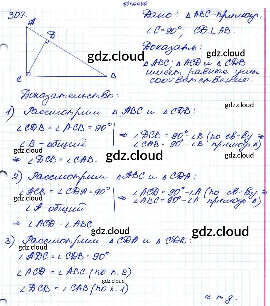Ответ на задание 307 Учебник Геометрия за 7, 8, 9 (седьмой, восьмой, девятый) класс Атанасян, Бутузов, Кадомцев 2010